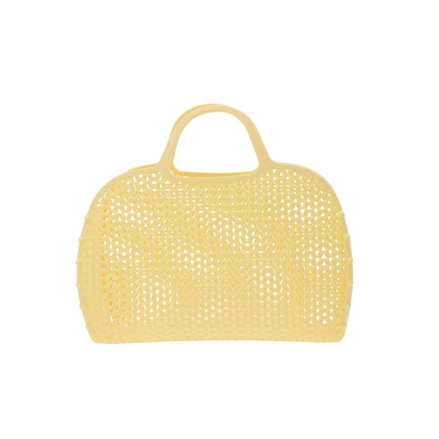 Bolso vintage en material de plástico y rejilla, de la marca Monneka. Es desmontable. Plástico LDPE y reciclable Tamaño: 25 cm x 30cm x 10 cm