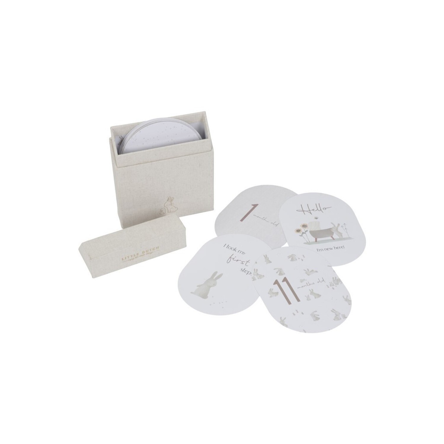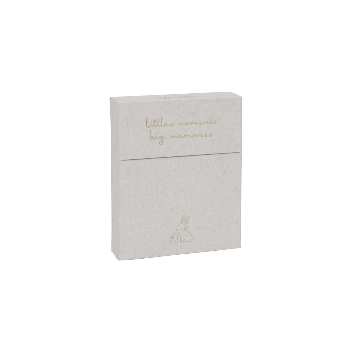 La caja está decorada con el mismo diseño encantador de Baby Bunny que adorna las tarjetas de hitos, junto con el emotivo texto Pequeños momentos, grandes recuerdos . Es el hogar perfecto para los momentos inolvidables de tu pequeño, creando un tesoro de recuerdos que atesorarás durante toda la vida. Cada momento es precioso, cada hito es único. ¡Disfruta de este viaje especial con tu pequeño conejito!