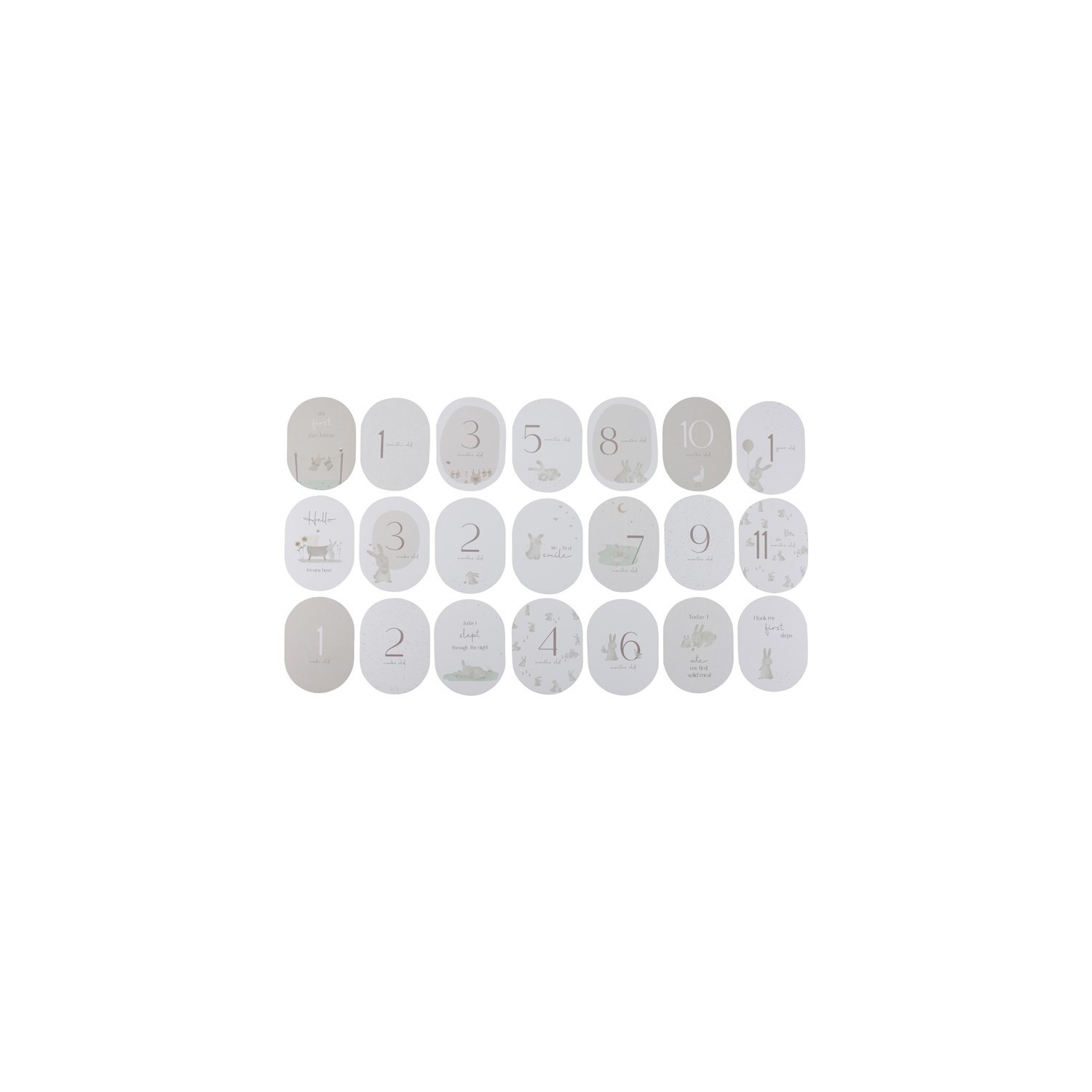Captura todos esos preciosos recuerdos de tu bebé recién nacido. Observa cómo tu bebé crece y alcanza hitos inolvidables con este juego de 21 tarjetas de diseño exclusivo. Desde la primera sonrisa hasta los primeros pasos, cada tarjeta está cuidadosamente elaborada para marcar esos momentos especiales en los primeros días de tu bebé. Las tarjetas de hitos vienen alojadas en una exquisita caja beige claro adornada con una lujosa tela de lino.