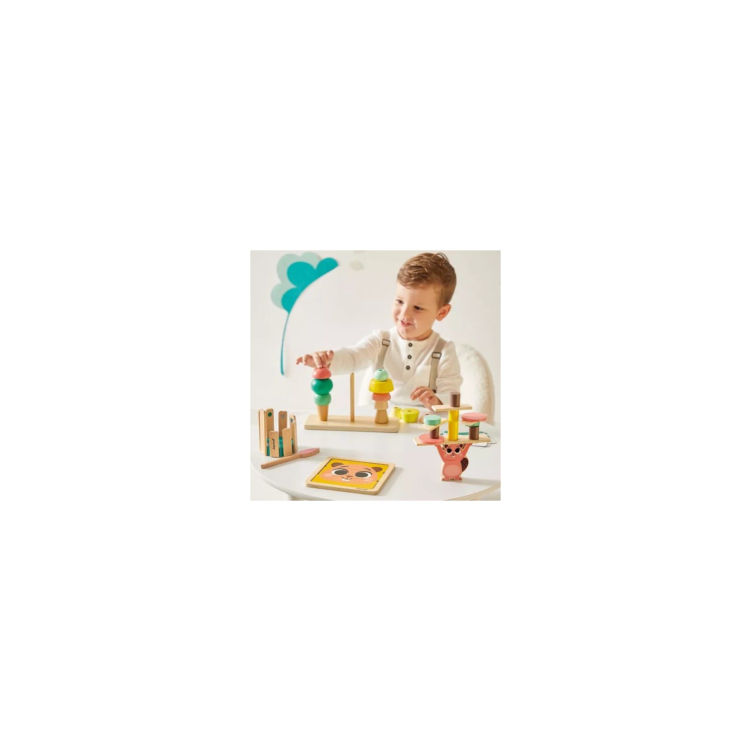 A los 3 años, el niño va creciendo y desarrollando poco a poco sus competencias cognitivas y sociales. Por eso optamos por contar con el asesoramiento de una especialista en psicomotricidad para diseñar un conjunto de juguetes educativos acordes con el ritmo de desarrollo del pequeño. Así tienes la garantía de ofrecerle unos juguetes de madera duraderos que estimulen la vista, el oído, el vocabulario, la motricidad fina y la lógica del niño: ¡para aprender a hacerse mayor! En el interior de la Box Janod encontrarás un folleto explicativo para aprender a utilizar estos juegos educativos. Este kit de juego forma parte de nuestra colección de 4 cajas por edades, que acompañan a los niños en sus primeros aprendizajes de los 12 a los 36 meses, con juegos de calidad adaptados a las competencias que van adquiriendo. Juguetes de madera y cartón con certificado FSC™.