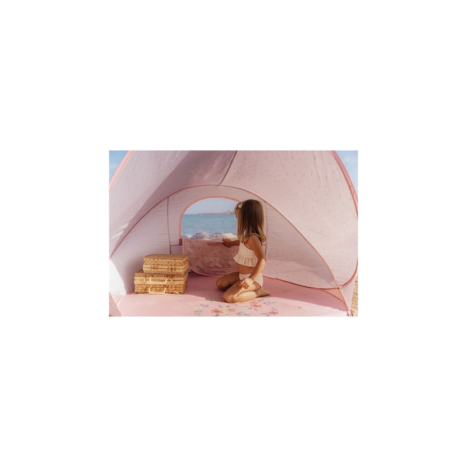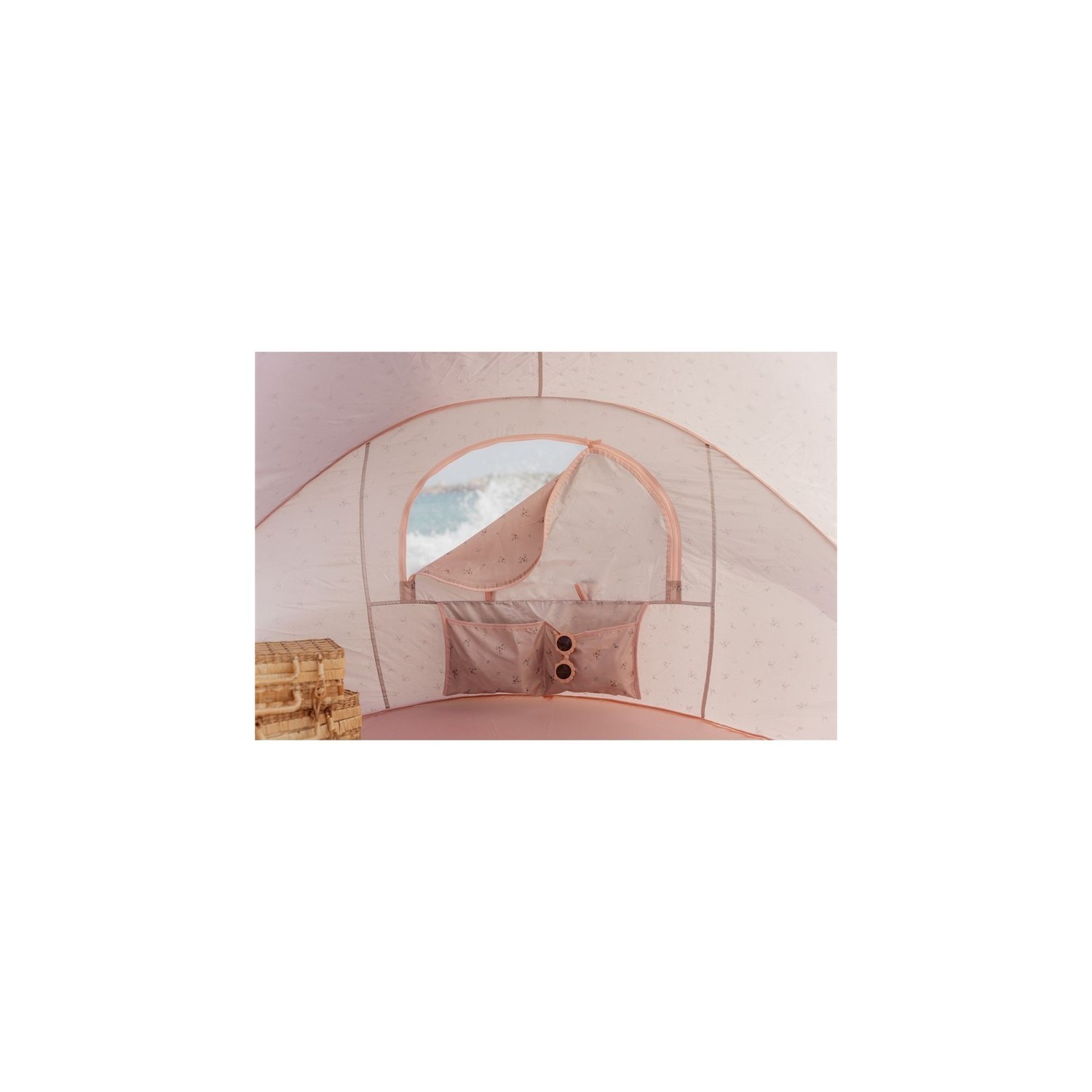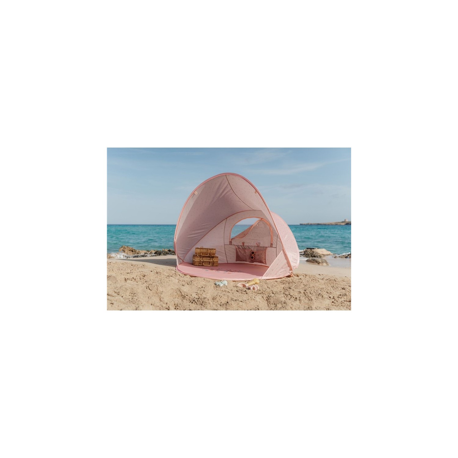 ¡Hola Playa! Esta práctica tienda paraviento para la playa es ideal para todos los días de playa. Debajo de la tienda podrás sentarte a la sombra mientras te relajas y juegas. En la tienda hay un práctico compartimento donde puedes guardar algunas cosas.