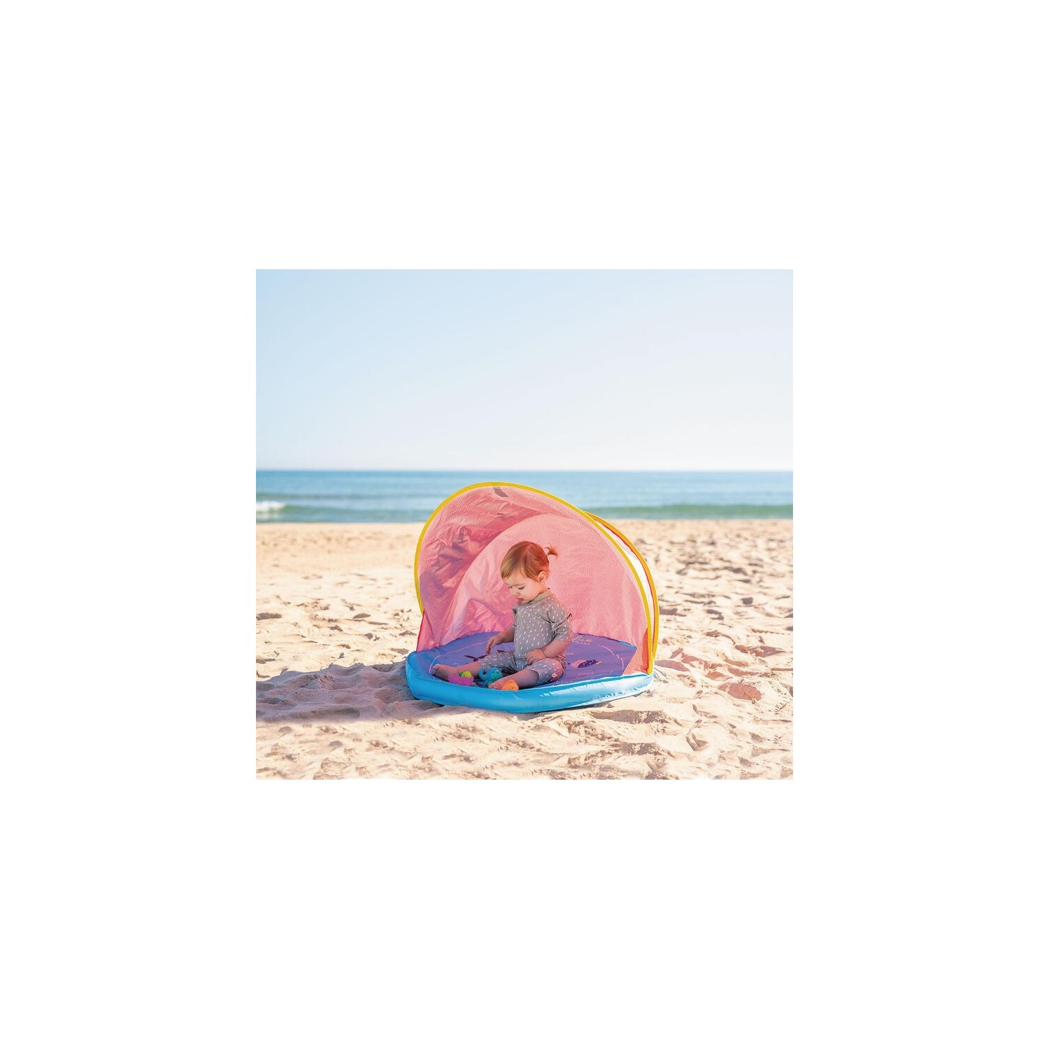 › Protege a tu bebé del viento y del sol mientras se divierte