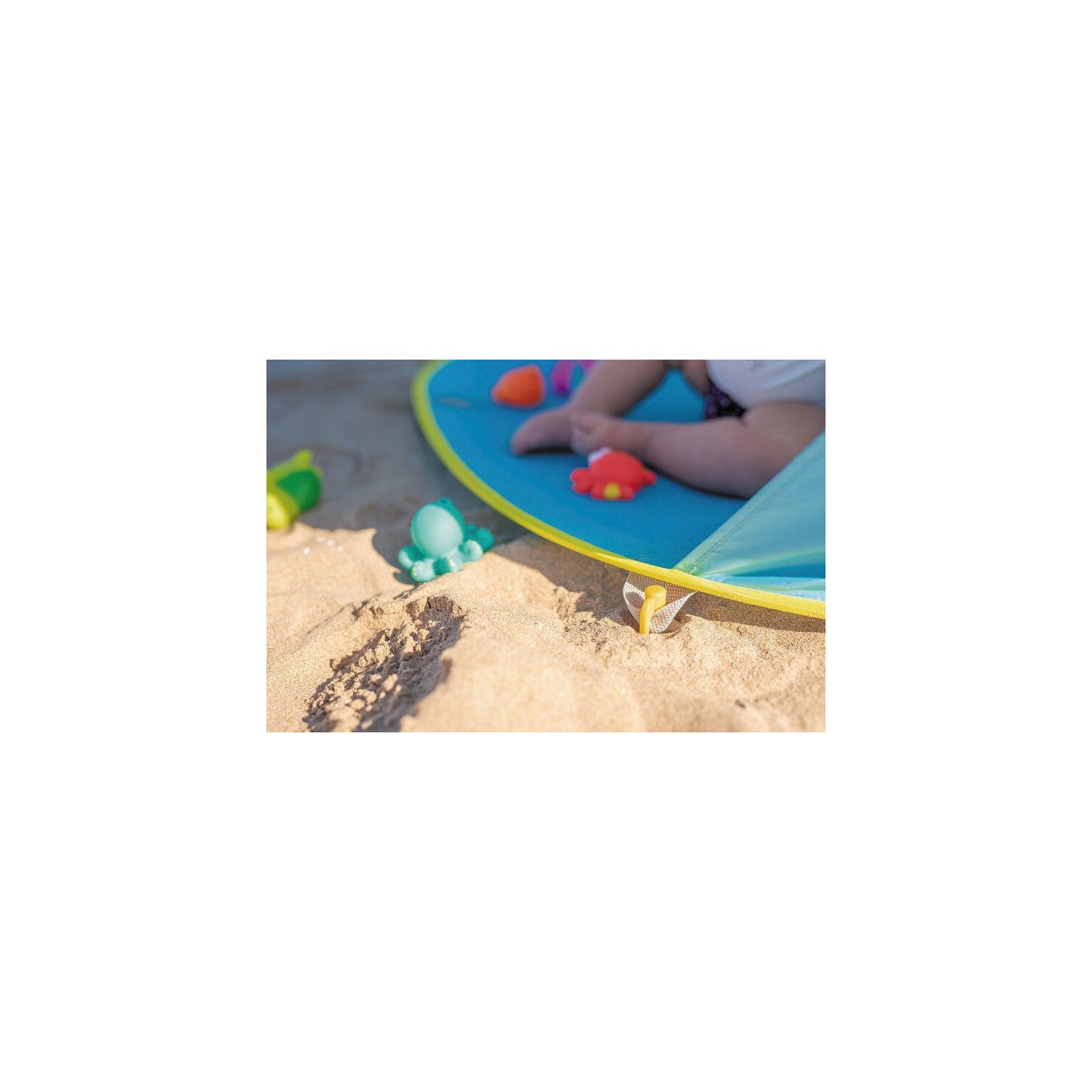 › Con 4 piquetas para fijar a la arena