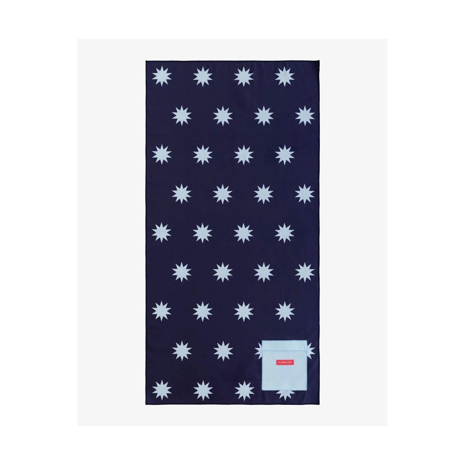 Toalla de microfibra azul colección niños perfecta para playa o piscina. Incluye bolsillo con cremallera, bolsa de transporte y es de secado rápida y ultraligera