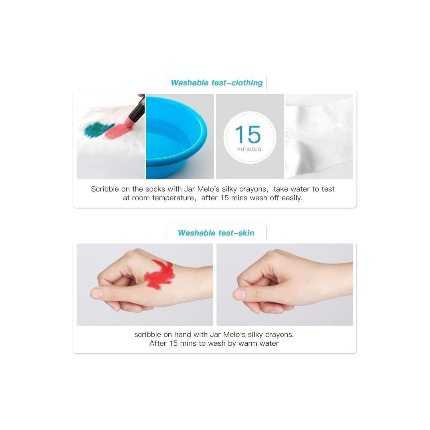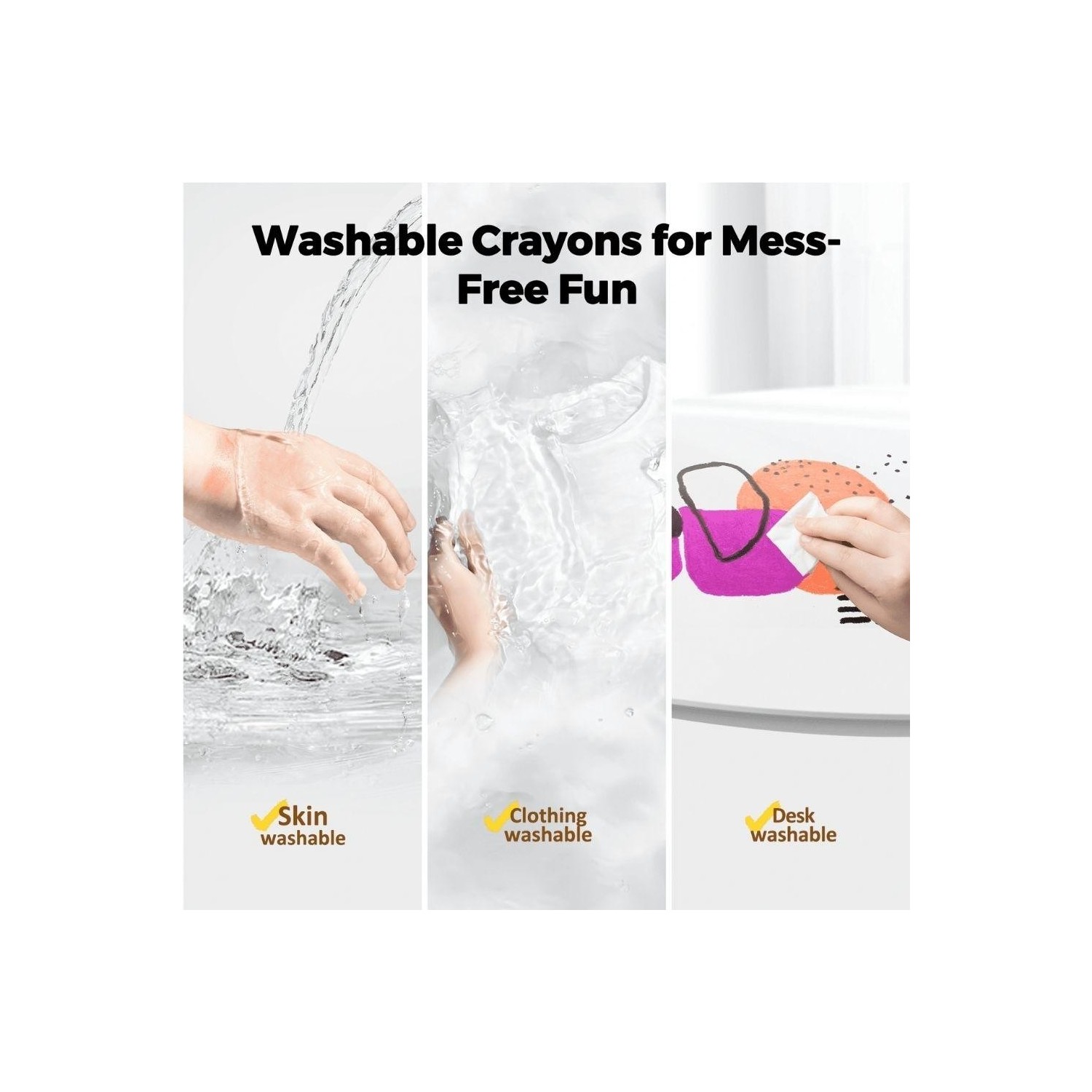 Con materiales no tóxicos y certificaciones ASTM y CPC, ofrecen tranquilidad a quien cuida. Si algo se mancha, se limpia fácil: un poco de agua (y jabón suave si hace falta) y el color desaparece de piel, ropa o superficies.