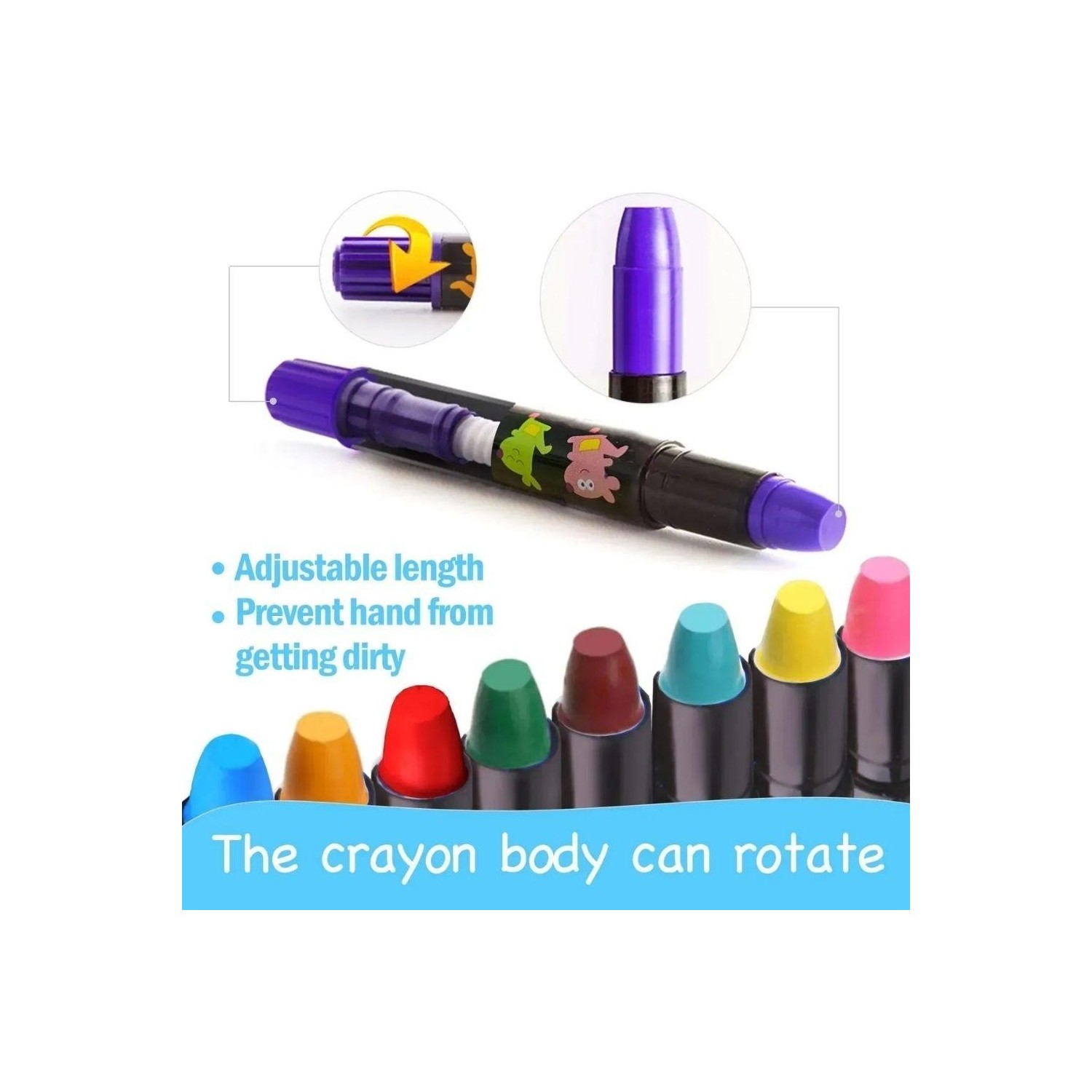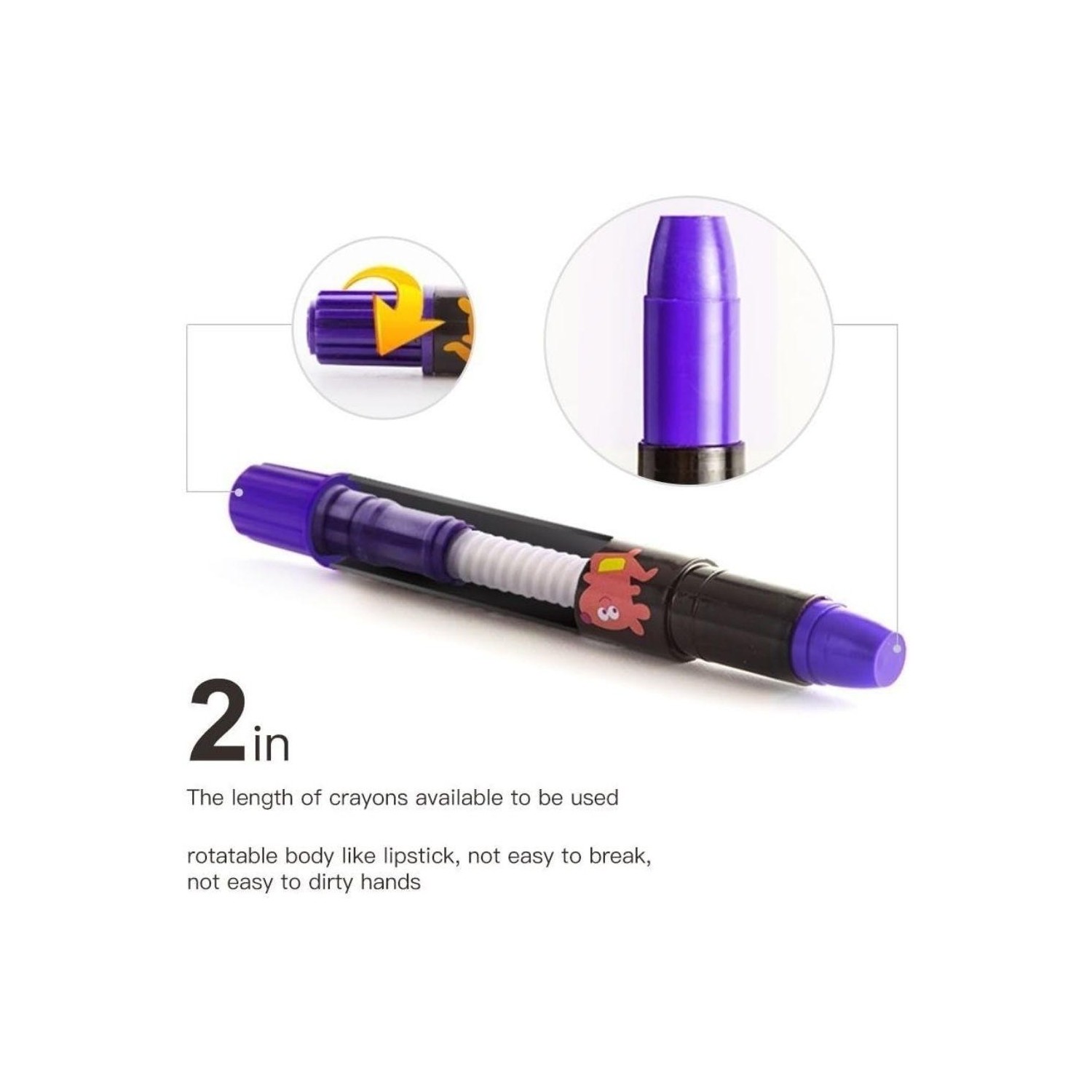 La carcasa giratoria protege la mina y propone una pequeña rutina de independencia: girar, pintar y volver a guardar. Ese gesto entrena pinza, coordinación y control de la presión, y mantiene el estuche limpio y listo para el siguiente dibujo.