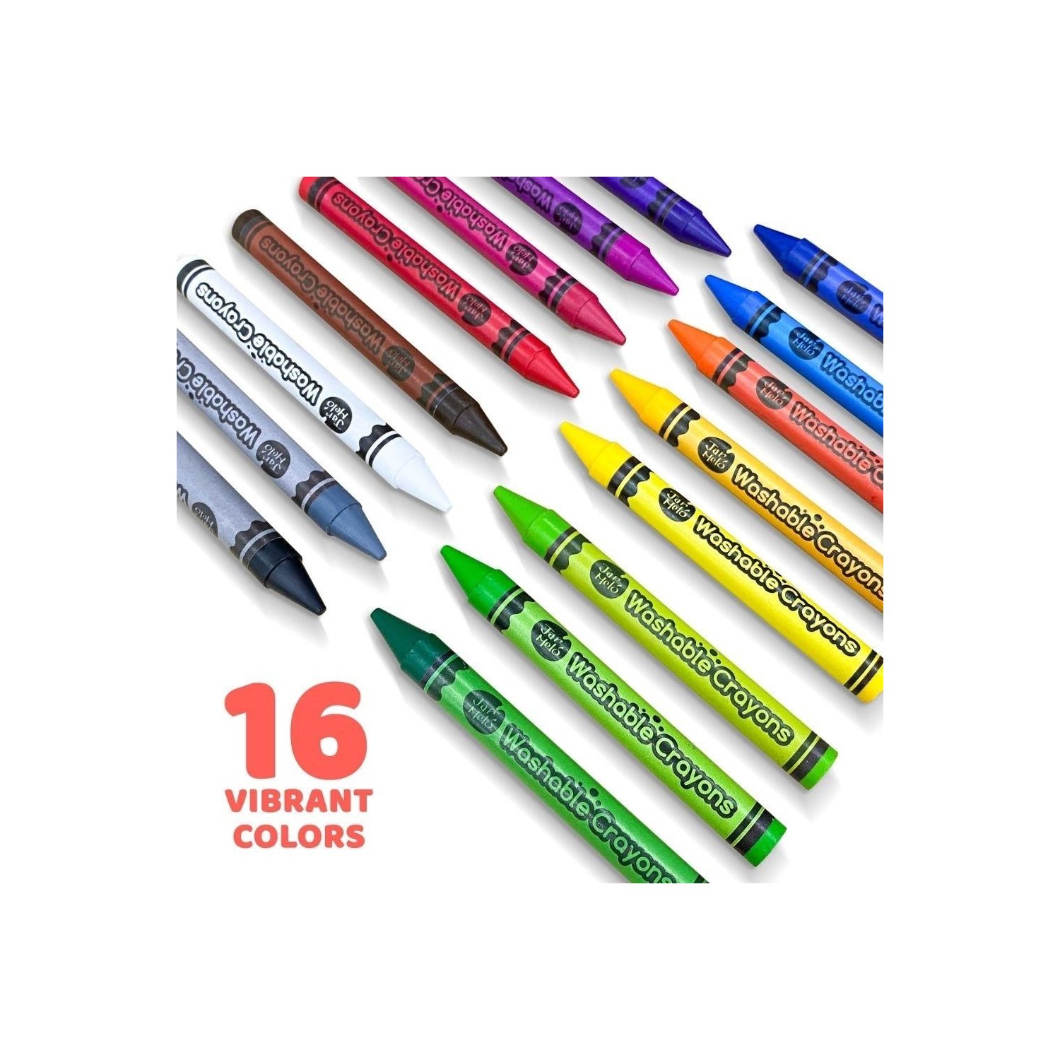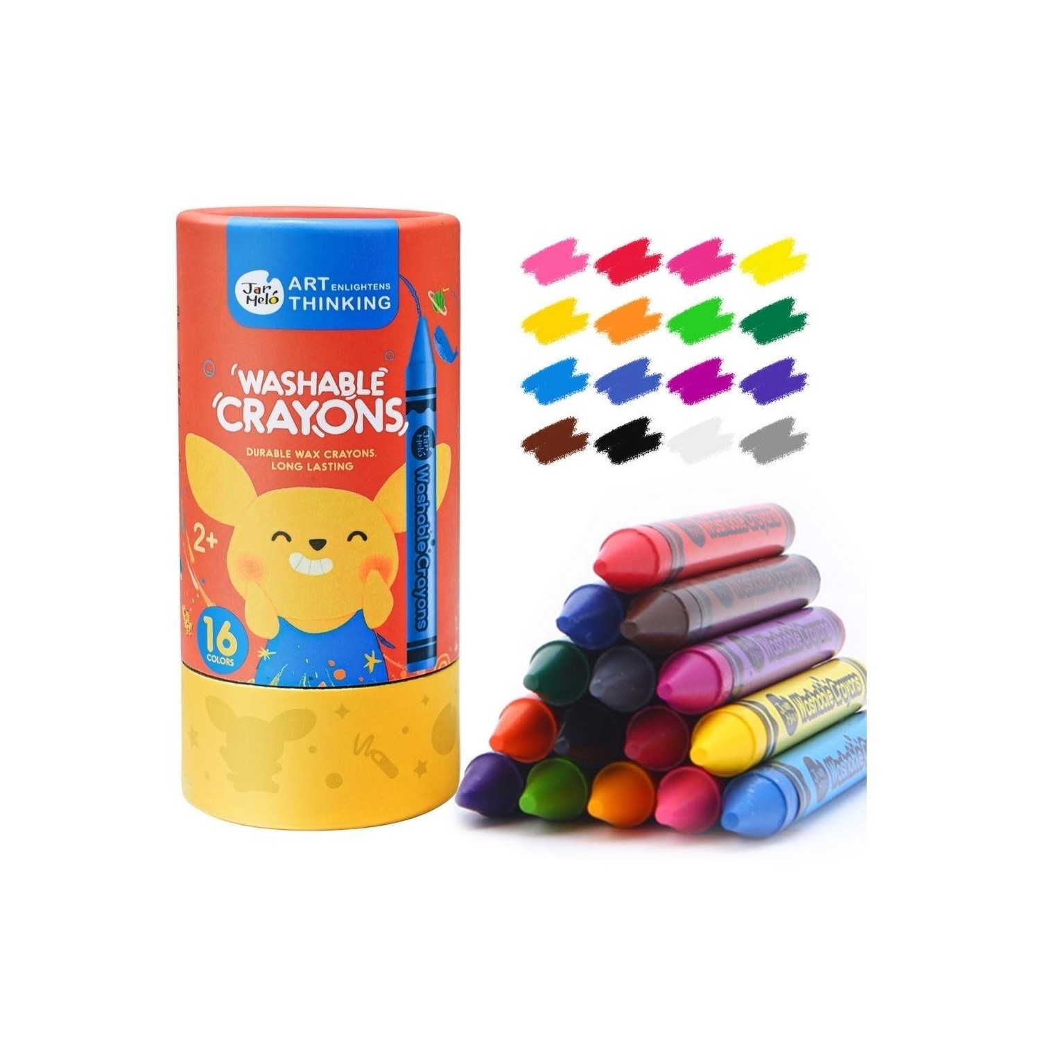 Cubo con 16 crayones lavables pensado para el uso diario en casa o en el aula. La forma ergonómica facilita el agarre de manos pequeñas y acompaña la pinza y el control de la presión, para que dibujen con comodidad y autonomía.