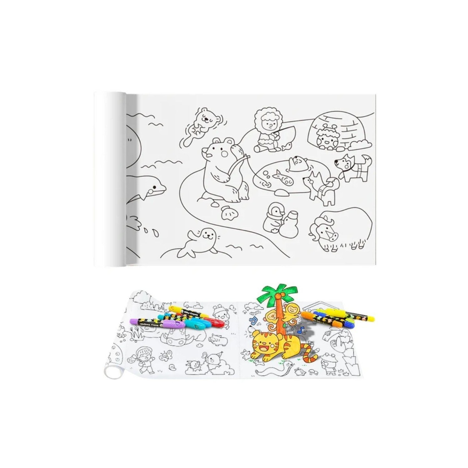 Gracias a su formato adhesivo, las hojas pueden colocarse en la pared, el suelo o el escritorio, ampliando la experiencia de dibujo y favoreciendo el movimiento libre, la exploración y el trabajo corporal mientras se colorea. Dibujar deja de ser una actividad estática para convertirse en una experiencia envolvente.