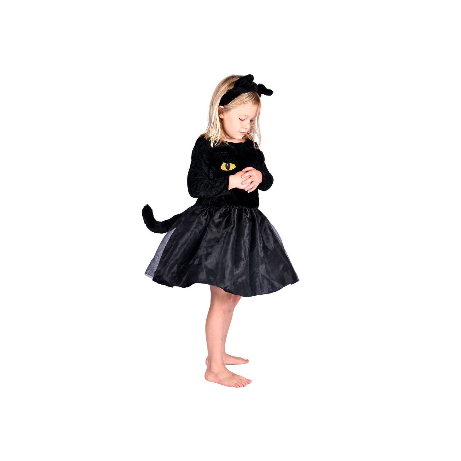 Todos los gatos usan vestidos cuando quieren ser más amables. Disfraz compuesto por un vestido tan tierno como bonito y una diadema con orejas de gato mullidas. El vestido tiene una falda de tul con cola cosida, un corpiño esponjoso con ojos bordados y orejas cosidas y mangas de terciopelo negro.