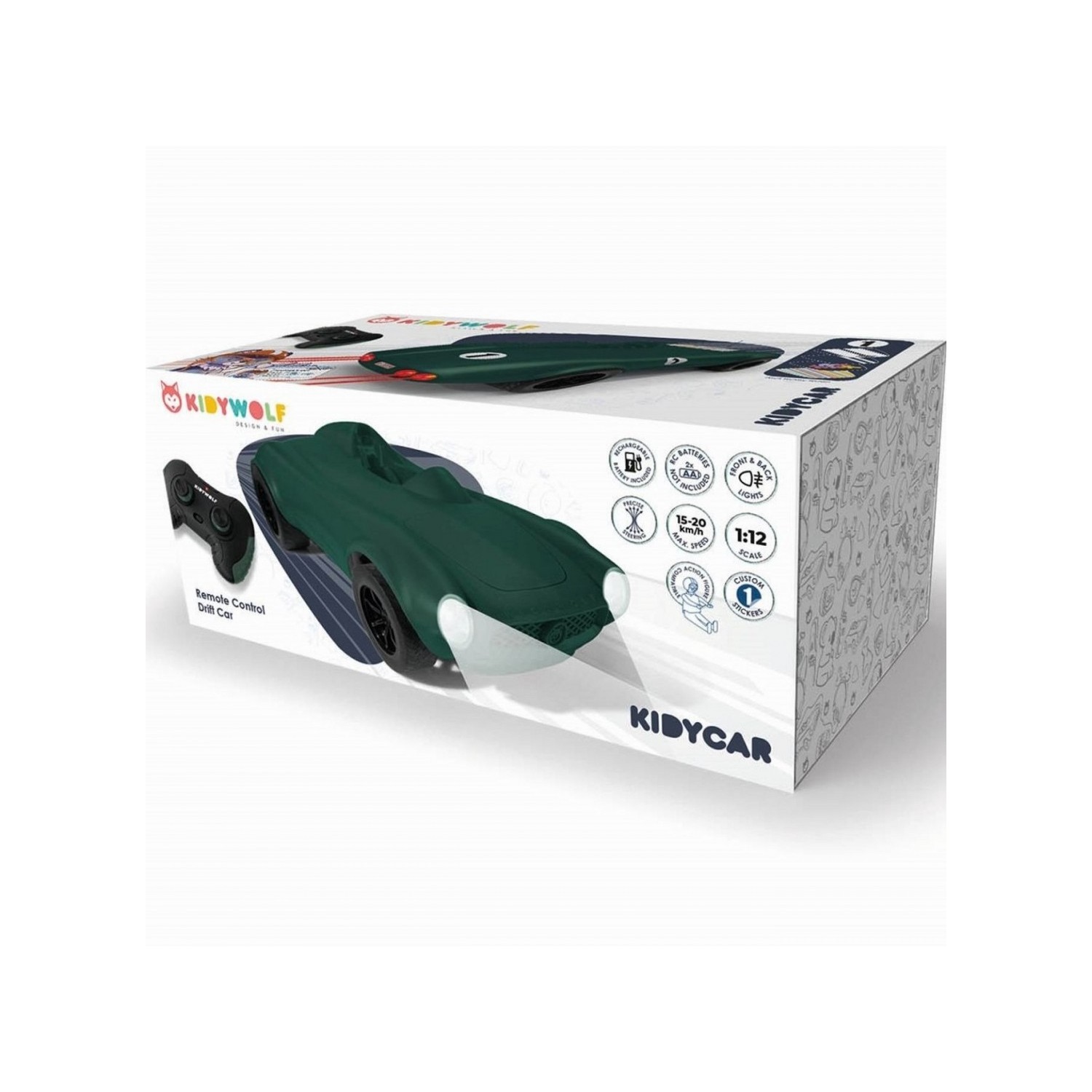 Siente la emoción de las carreras con el Kidycar de Kidywolf. Inspirado en el diseño de vehículos icónicos, este coche teledirigido es perfecto para los amantes de la velocidad y los derrapes. ¡Puede alcanzar hasta 15 km/h!