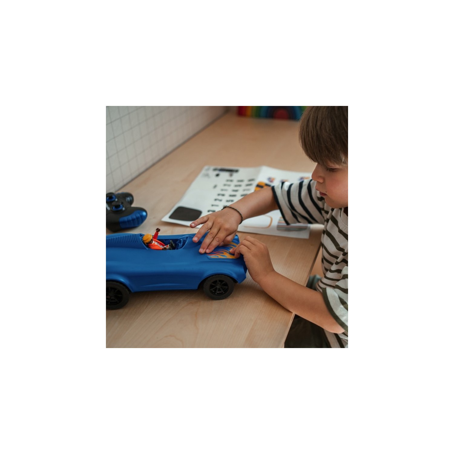 La experiencia de conducción es total. Cuenta con neumáticos de goma y suspensión delantera para un mejor agarre, y sus luces delanteras y traseras se encienden automáticamente, haciendo el juego nocturno aún más espectacular.