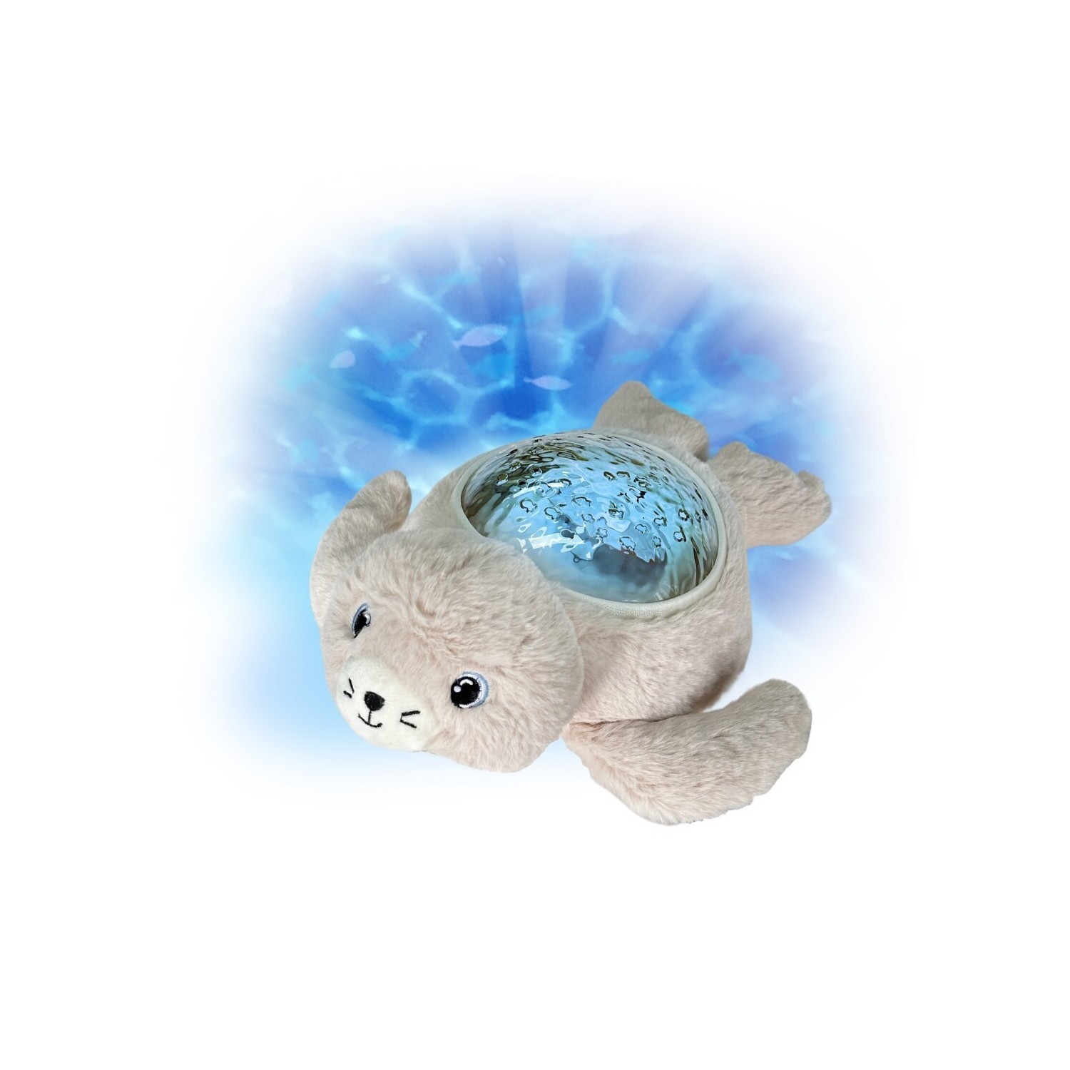 El proyector peluche foca de Pabobo, crea una atmosfera submarina con efectos de olas y peces para calmar al bebé y ayudarlo a conciliar el sueño.