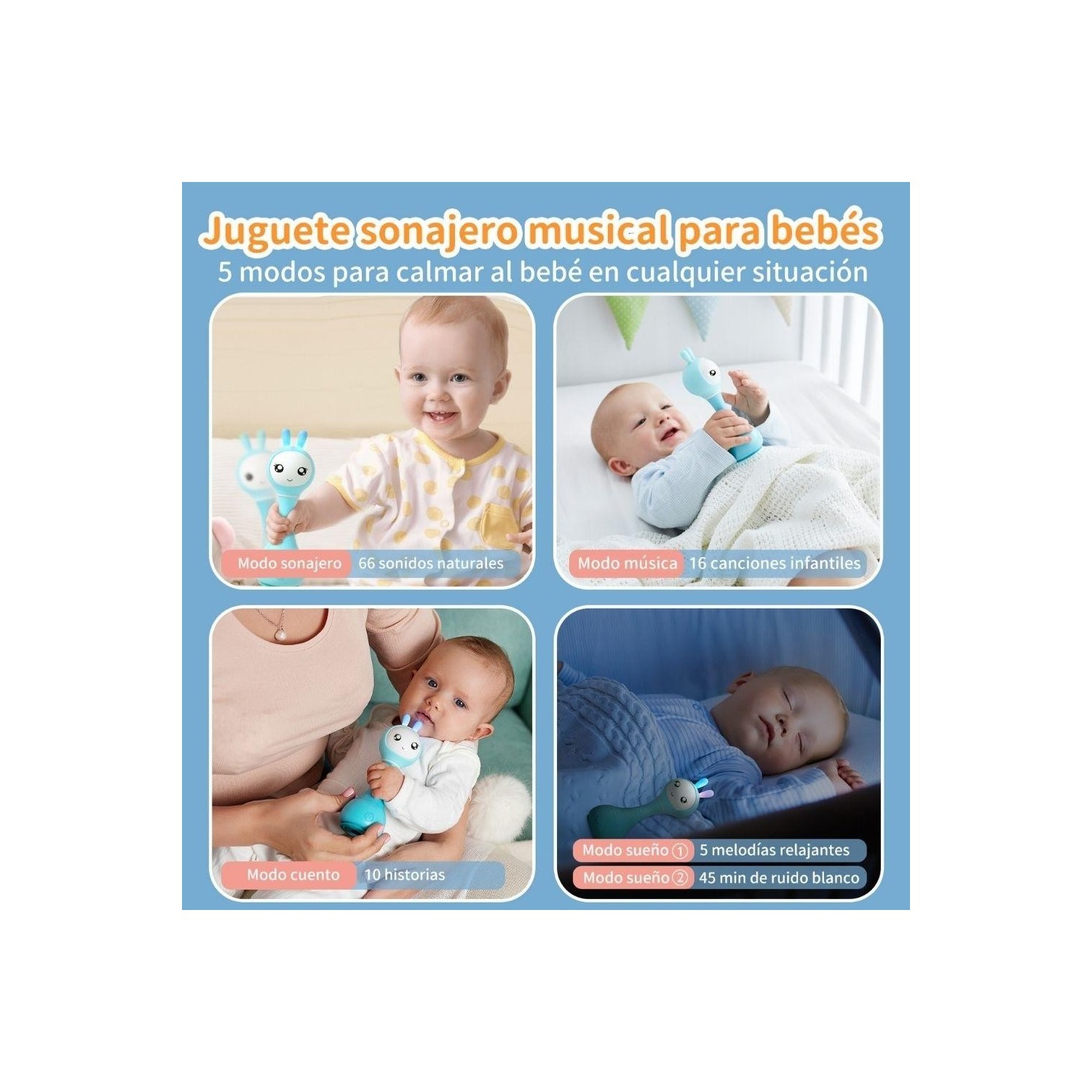 - Sonajero musical: emite más de 60 sonidos al agitarlo, captando la atención del bebé y favoreciendo la motricidad y la coordinación.