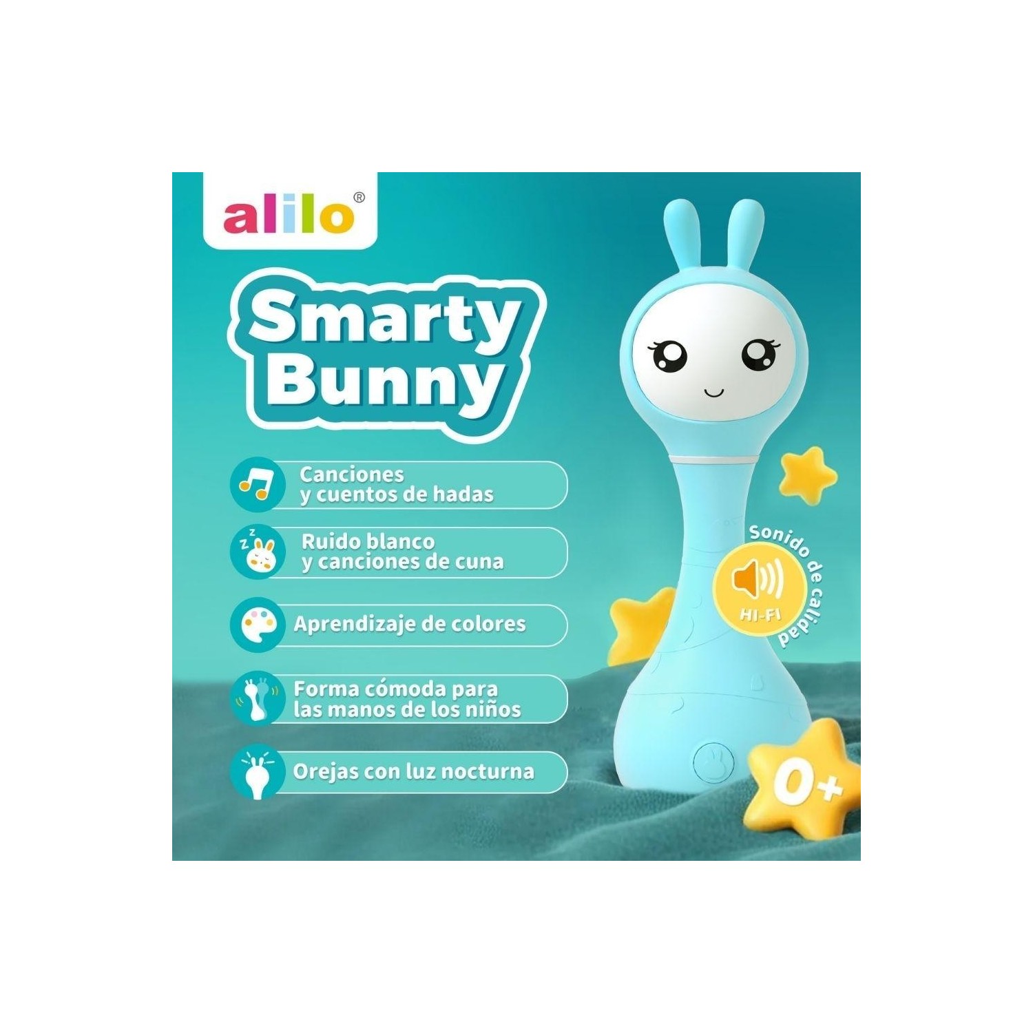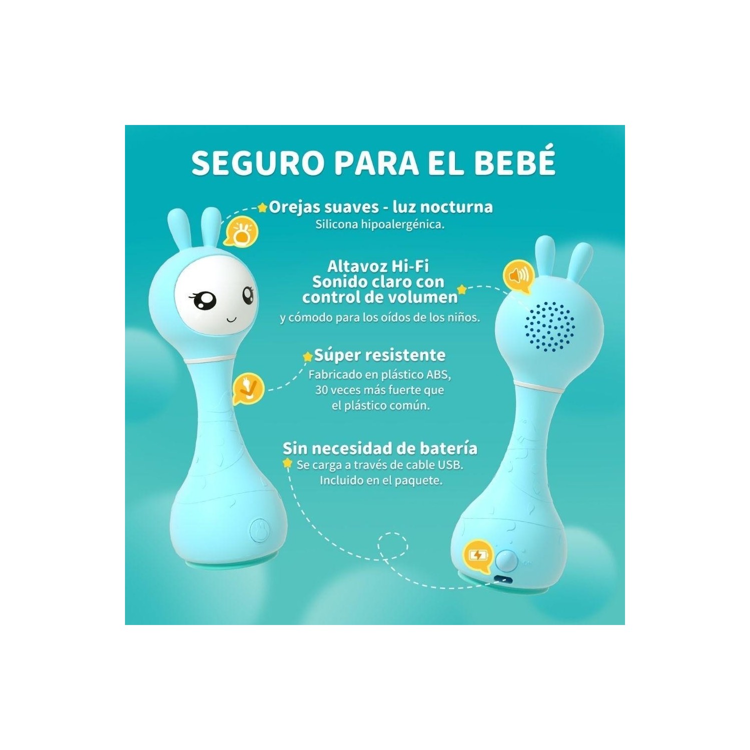 Smarty Bunny Blue en versión castellano y con la colaboración del grupo Pica Pica es un juguete interactivo educativo diseñado para bebés desde el nacimiento hasta los 36 meses. Combina sonido, luz y cuentos para acompañar el desarrollo temprano y la estimulación sensorial de forma divertida y segura.