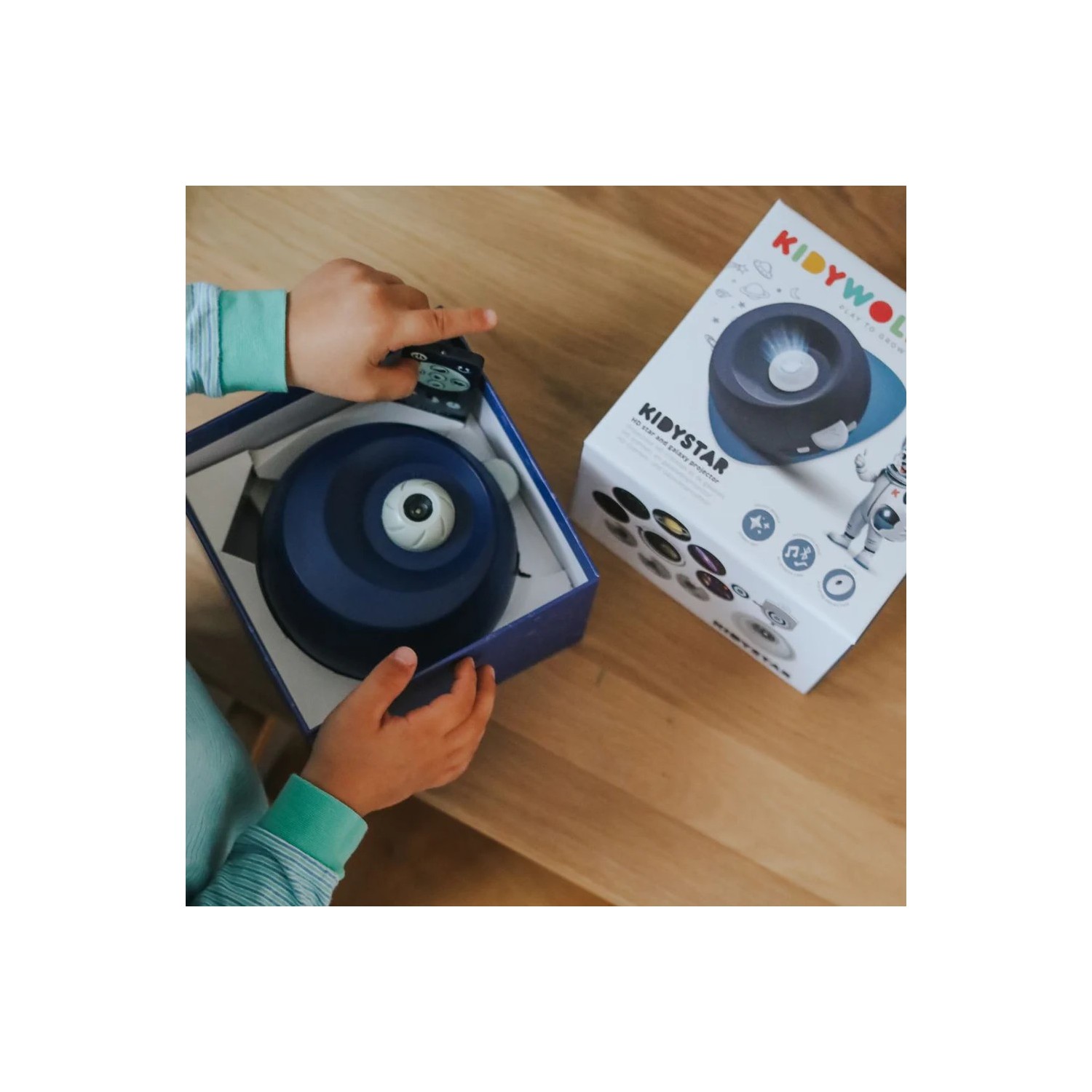 ¡Trae la magia a la habitación de tu hijo con KIDYSTAR! Este proyector de cuento de hadas transforma paredes y techos en un cautivador espectáculo de luces con sus 6 discos intercambiables. Con su folleto educativo ilustrado, despierta la curiosidad y calma el ánimo a la hora de dormir. Una invitación a la calma, a soñar despierto y al descubrimiento... para noches llenas de dulzura.