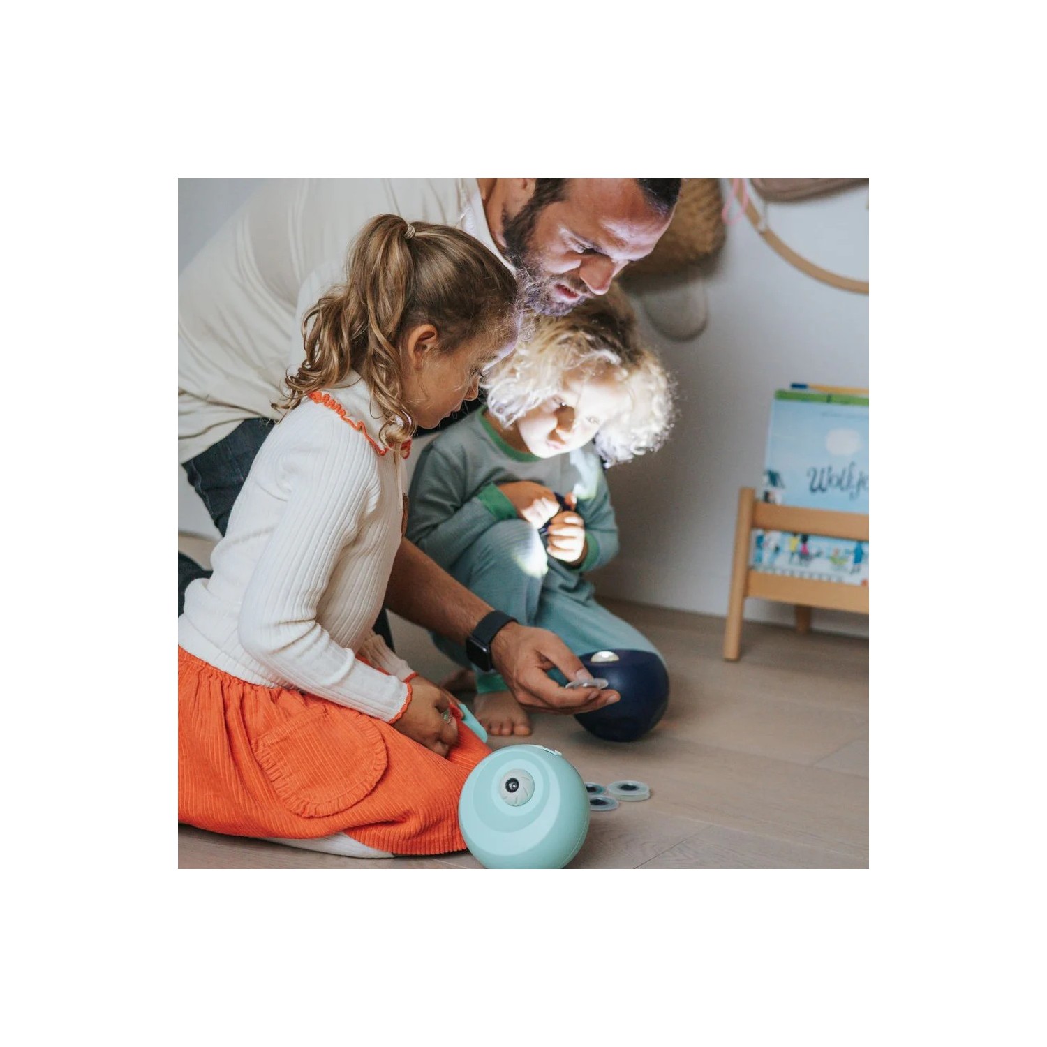 ¡Trae la magia a la habitación de tu hijo con KIDYSTAR! Este proyector de cuento de hadas transforma paredes y techos en un cautivador espectáculo de luces con sus 6 discos intercambiables. Con su folleto educativo ilustrado, despierta la curiosidad y calma el ánimo a la hora de dormir. Una invitación a la calma, a soñar despierto y al descubrimiento... para noches llenas de dulzura.