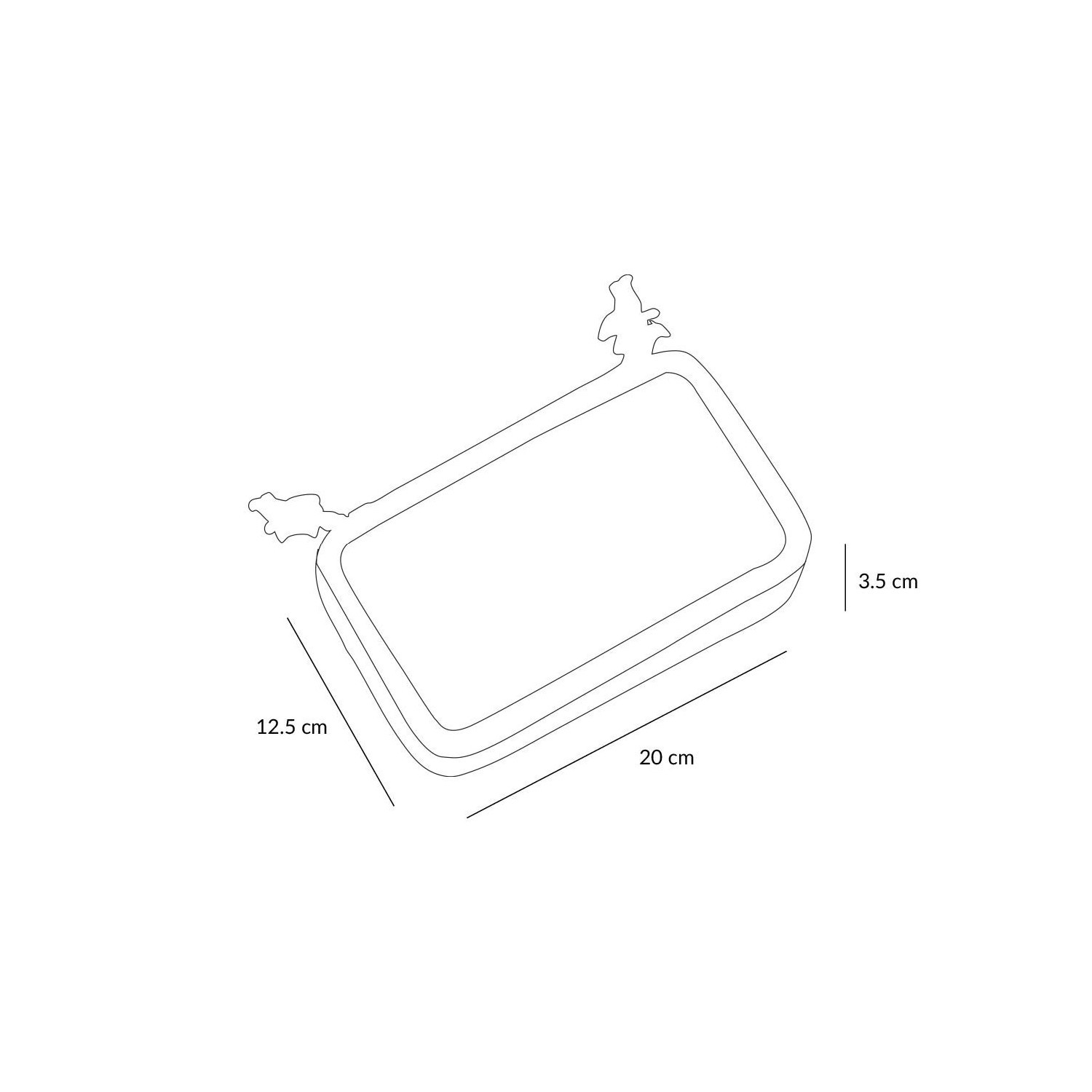 - Medidas: 20 cm (alto) x 12,5 cm (ancho) x 3,5 cm (fondo)
