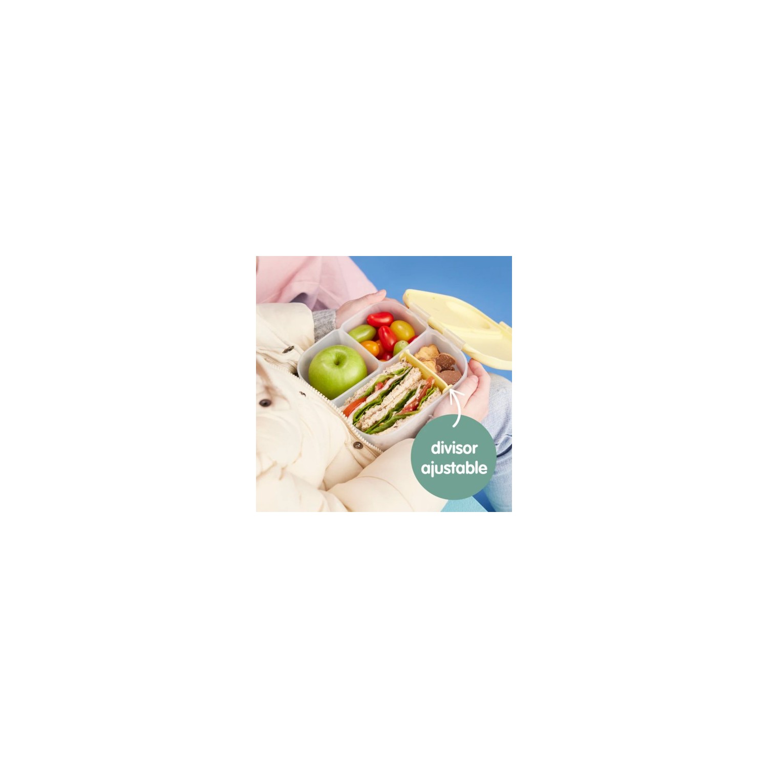 - El divisor extraíble (incluido) te permite ajustar el tamaño del compartimento o quitarlo para tener un espacio más amplio donde cabe un plátano o un wrap.