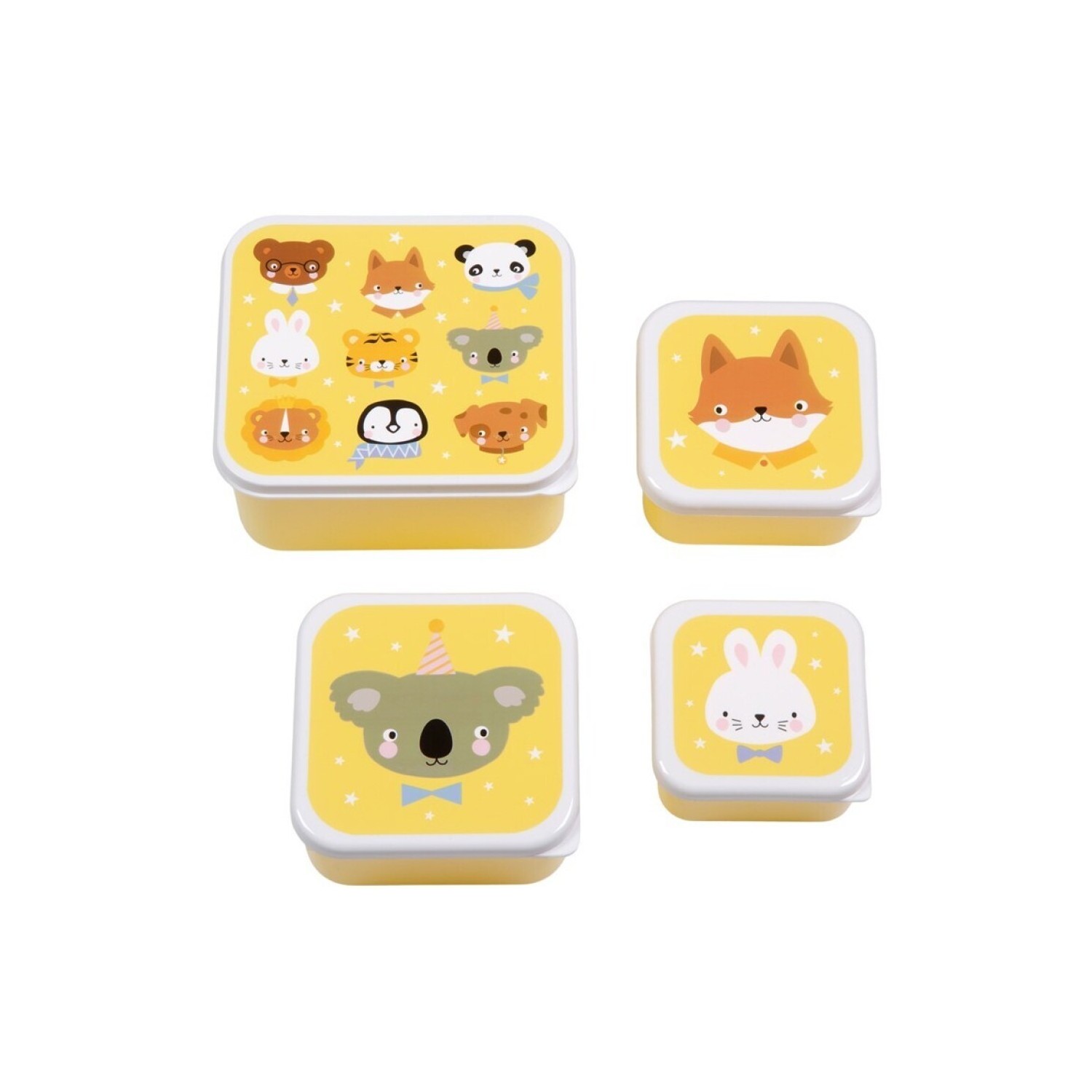 Este set de cuatro cajas de snacks es ideal para llevar al colegio o de viaje. Consta de cuatro cajas de diferentes tamaños, lo que facilita su apilamiento y almacenamiento. Caja principal: 15,8 x 14 x 7 cm, caja grande: 12 x 12 x 5,5 cm, caja mediana: 10,5 x 10,5 x 5 cm, caja pequeña: 9 x 9 x 4,5 cm