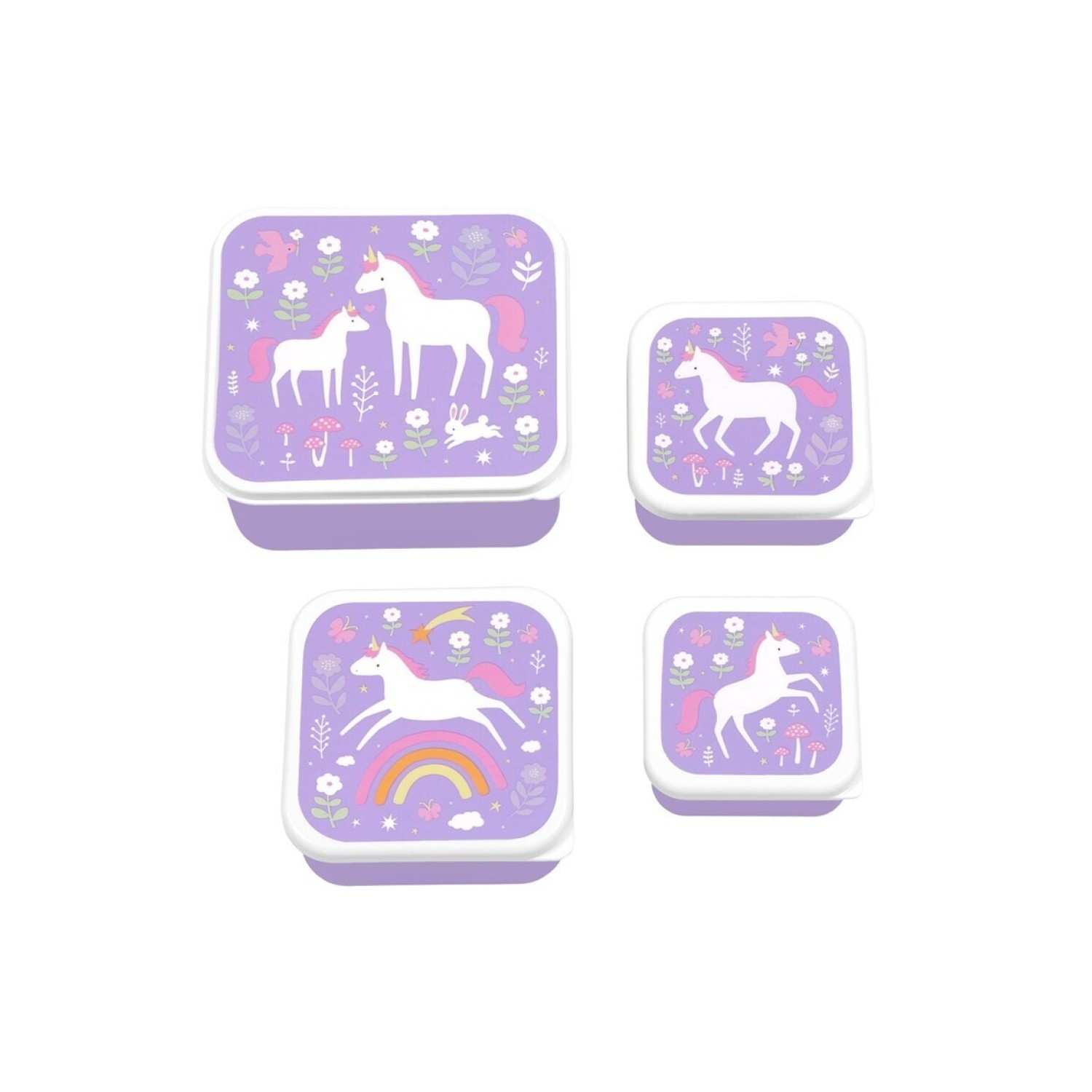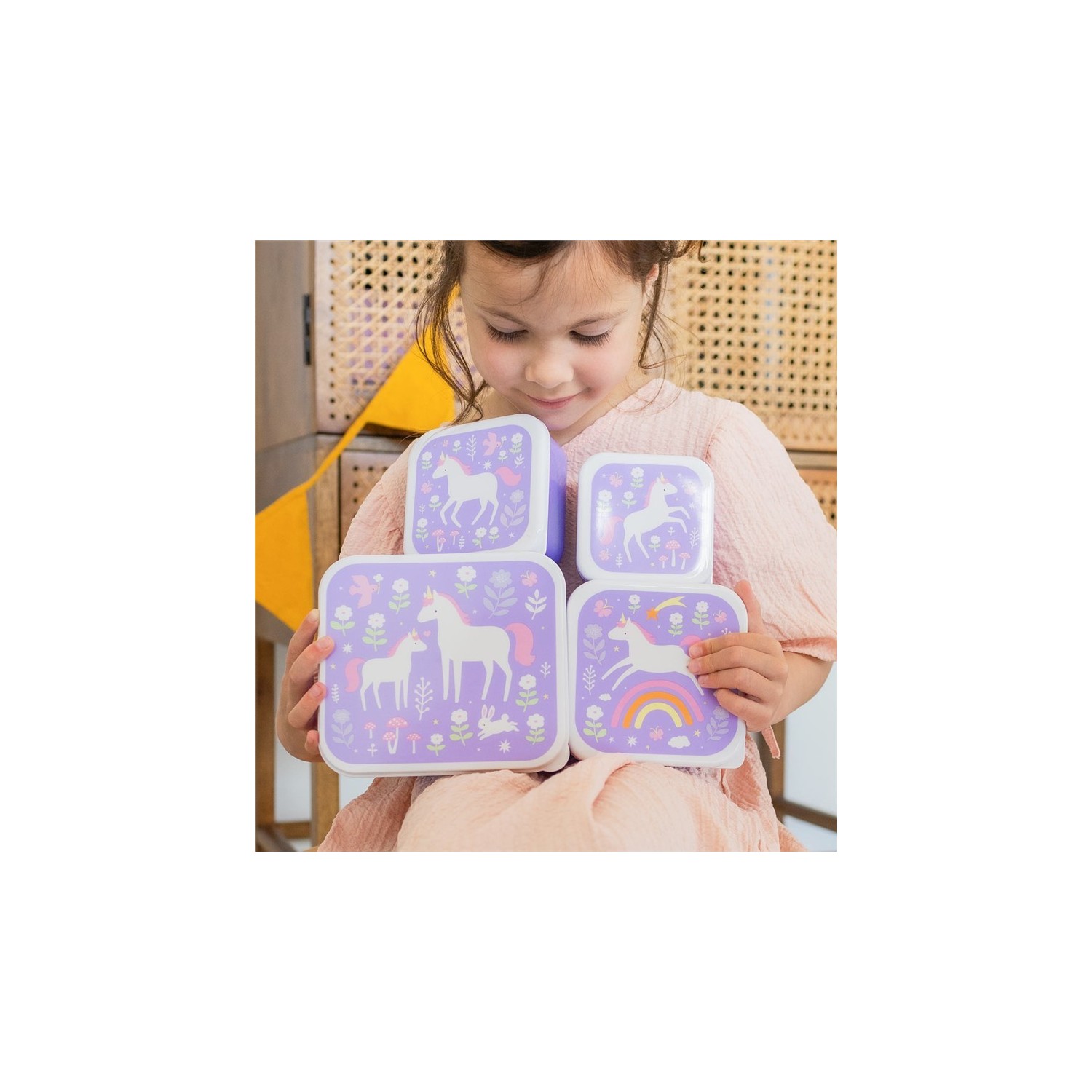 Este set de cuatro cajas de snacks es ideal para llevar al colegio o de viaje. Consta de cuatro cajas de diferentes tamaños, lo que facilita su apilamiento y almacenamiento. Caja principal: 15,8 x 14 x 7 cm, caja grande: 12 x 12 x 5,5 cm, caja mediana: 10,5 x 10,5 x 5 cm, caja pequeña: 9 x 9 x 4,5 cm