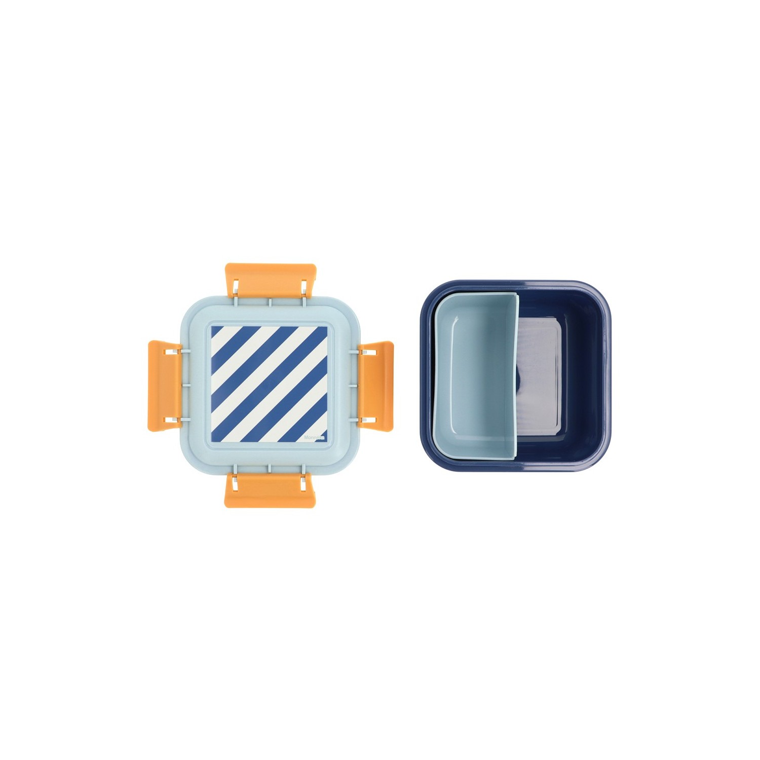 Bonita caja de almuerzo grande para llevar snacks al parque o el almuerzo al colegio de la Colección Monnëka Stripes Blues & Beyond.