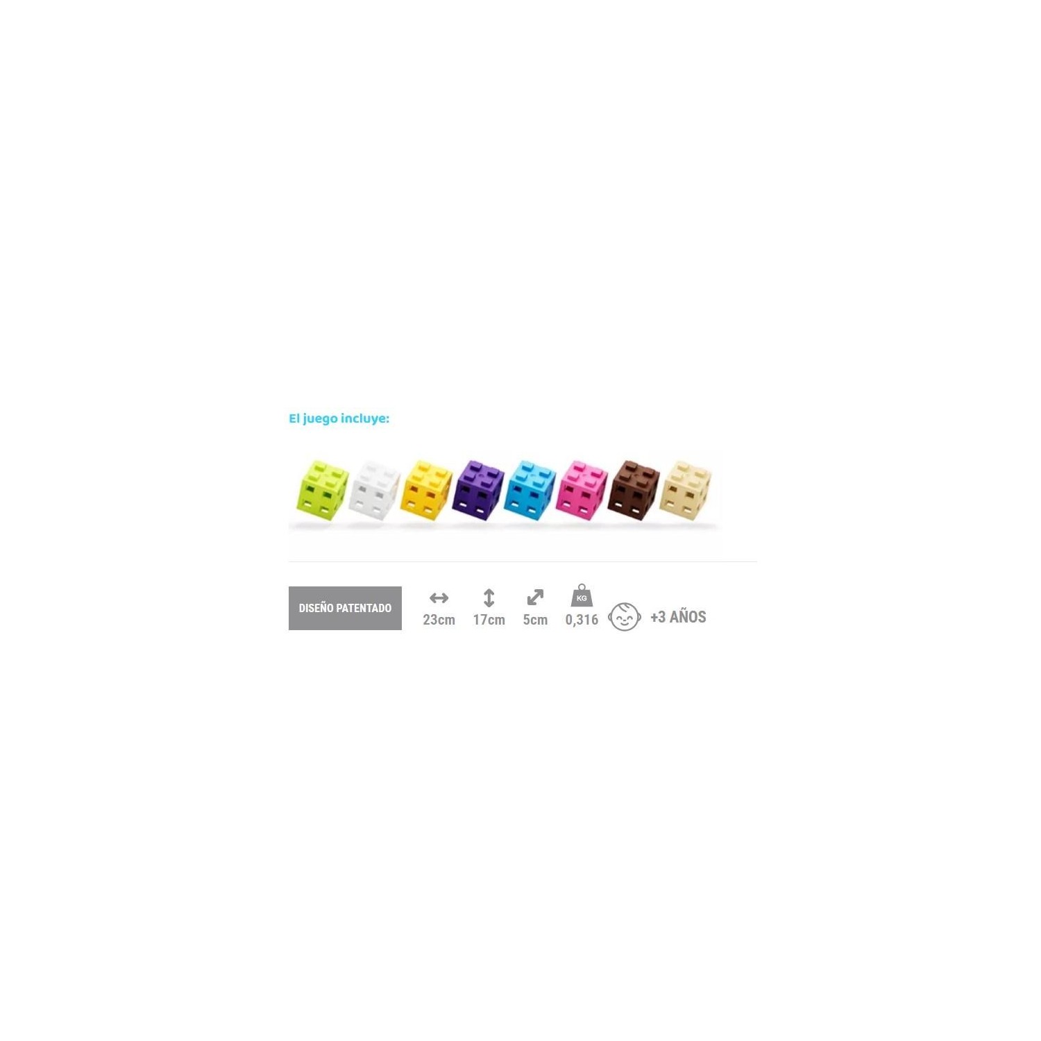 - Cada pieza tiene unas dimensiones de 2x2x2cm