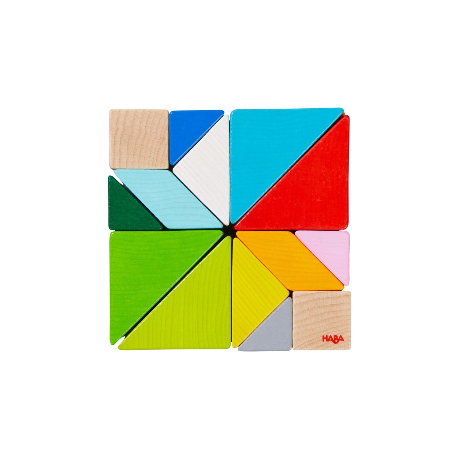 ¡Este cubo se las trae! Y lo que trae son piezas de madera de colores basadas en las formas básicas del tangram. Colocadas con ingenio unas al lado de las otras dan como resultado las formas y figuras geométricas más diversas. Y gracias a las posibilidades de composición - con o sin plantilla - permiten a los pequeños/as artistas experimentar libremente. |