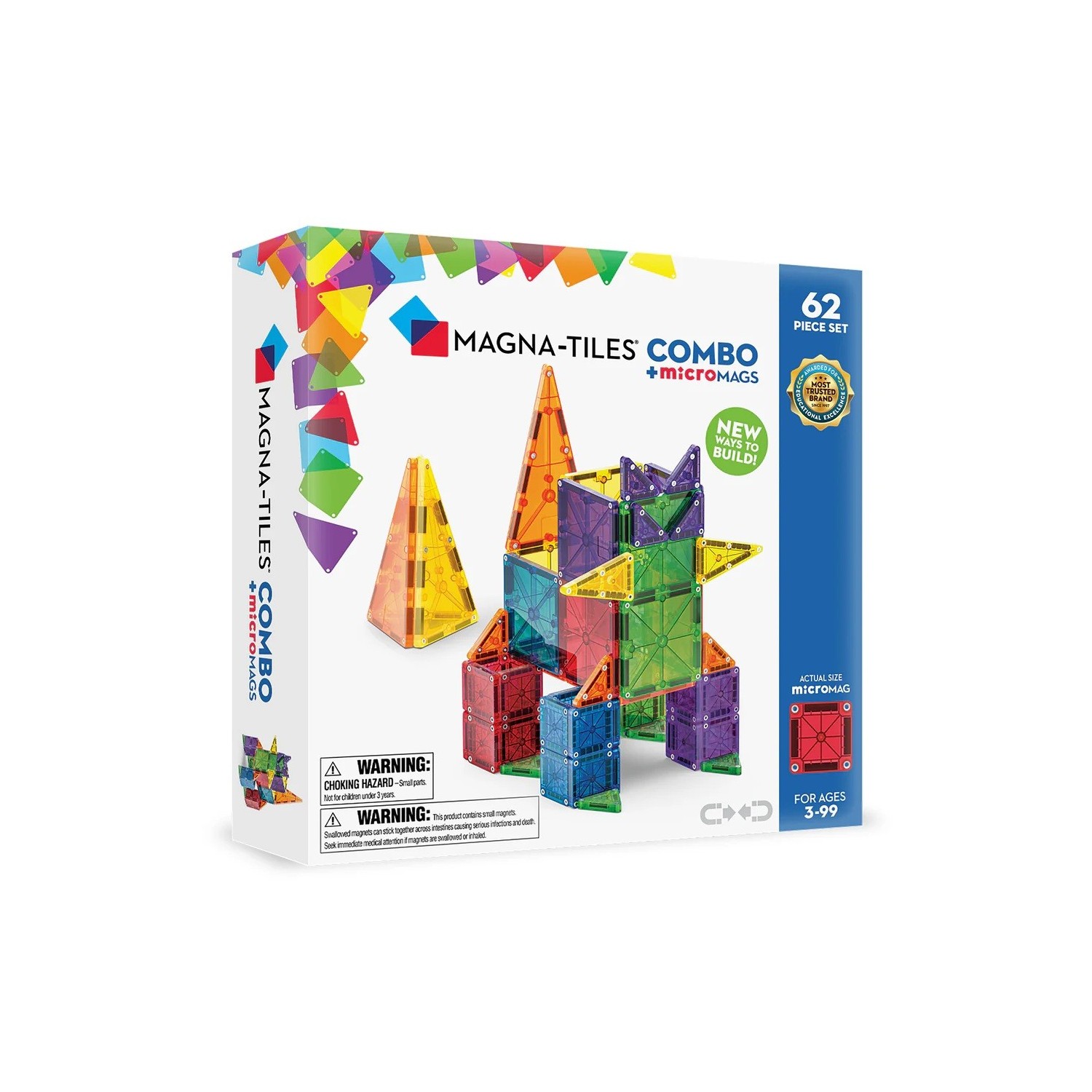 NUEVA combinación MAGNA-TILES® : fichas microMAGS y fichas clásicas. ¡Algunas combinaciones simplemente funcionan! De hecho, a los niños que participan en nuestras pruebas les encanta cómo las fichas microMAGS y clásicas funcionan juntas para crear construcciones únicas, por lo que hemos decidido unirlas en una nueva línea de sets MAGNA-TILES® Combos. Descubre nuevas y geniales formas de aprender, jugar, construir y crear con esta increíble variedad de fichas de tamaño estándar y micro.
