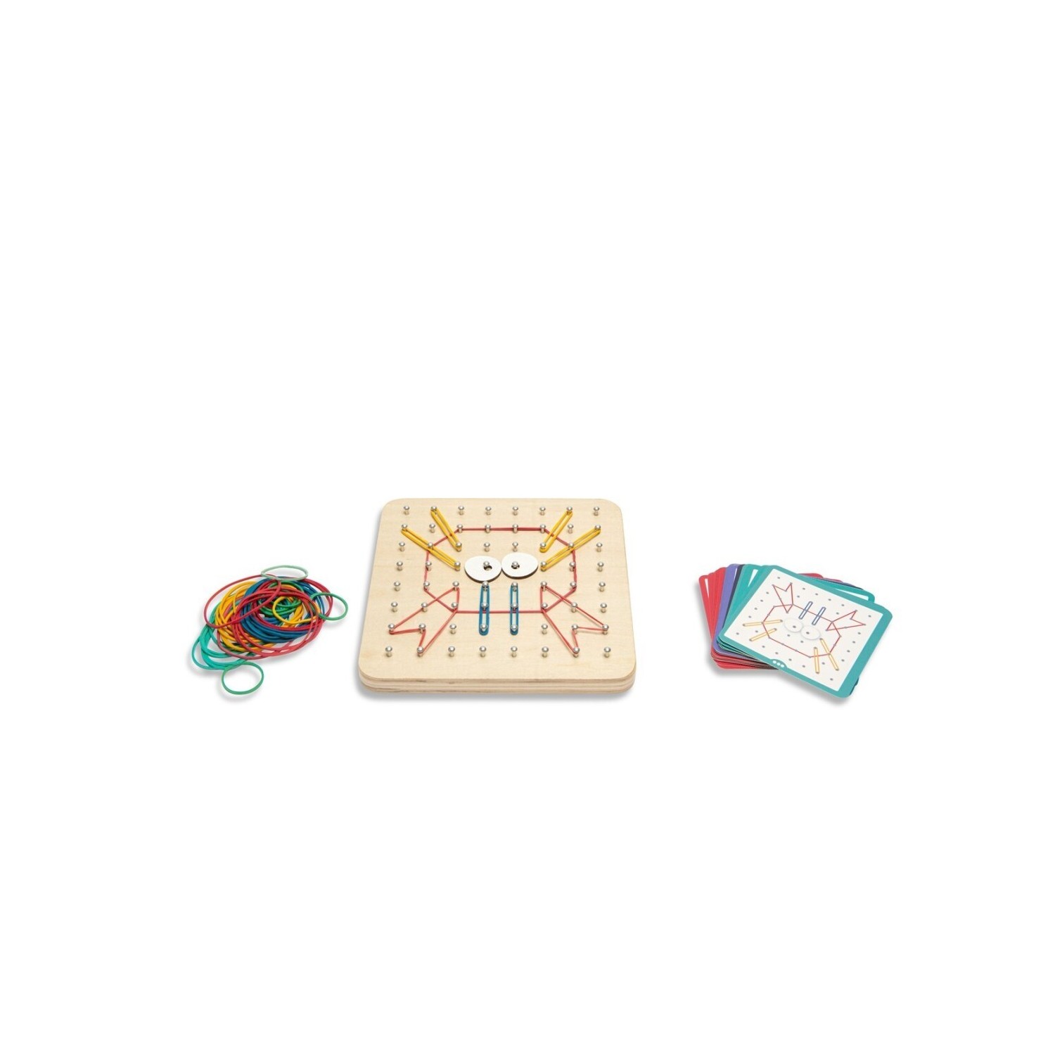 Haz las creaciones más bonitas con esta base y las gomas elásticas. Utiliza las tarjetas adjuntas como ejemplo y construye los patrones y las lindas criaturas, ¡o deja volar su creatividad y crea las creaciones más hermosas tú mismo!