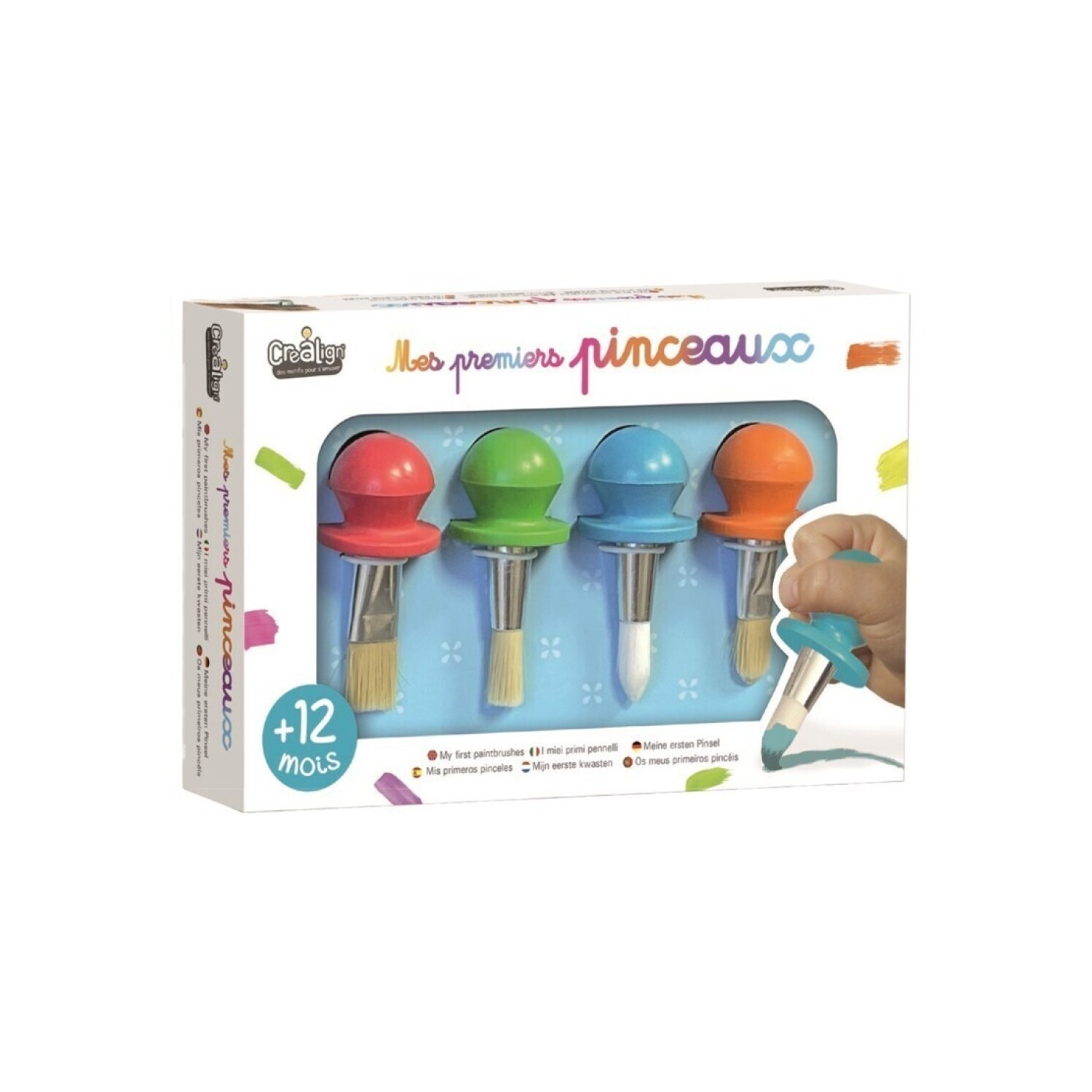| + 12 meses. Colección DESPERTAR Y DESCUBRIR. Mis primeros pinceles. Contiene: 4 pinceles con empuñadoras ergonómicas. (24,5 x 16 x 4 cm.) |