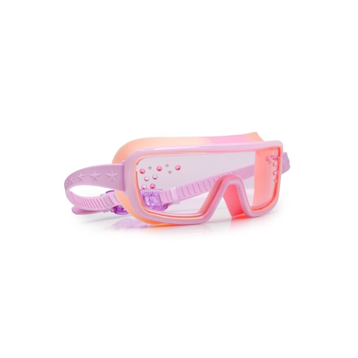 LENTES: Rosas con piedrecitas rosas y lilas. Protección UV - Anti-vaho. CINTA: Lila con pieza para ajustar la medida. |