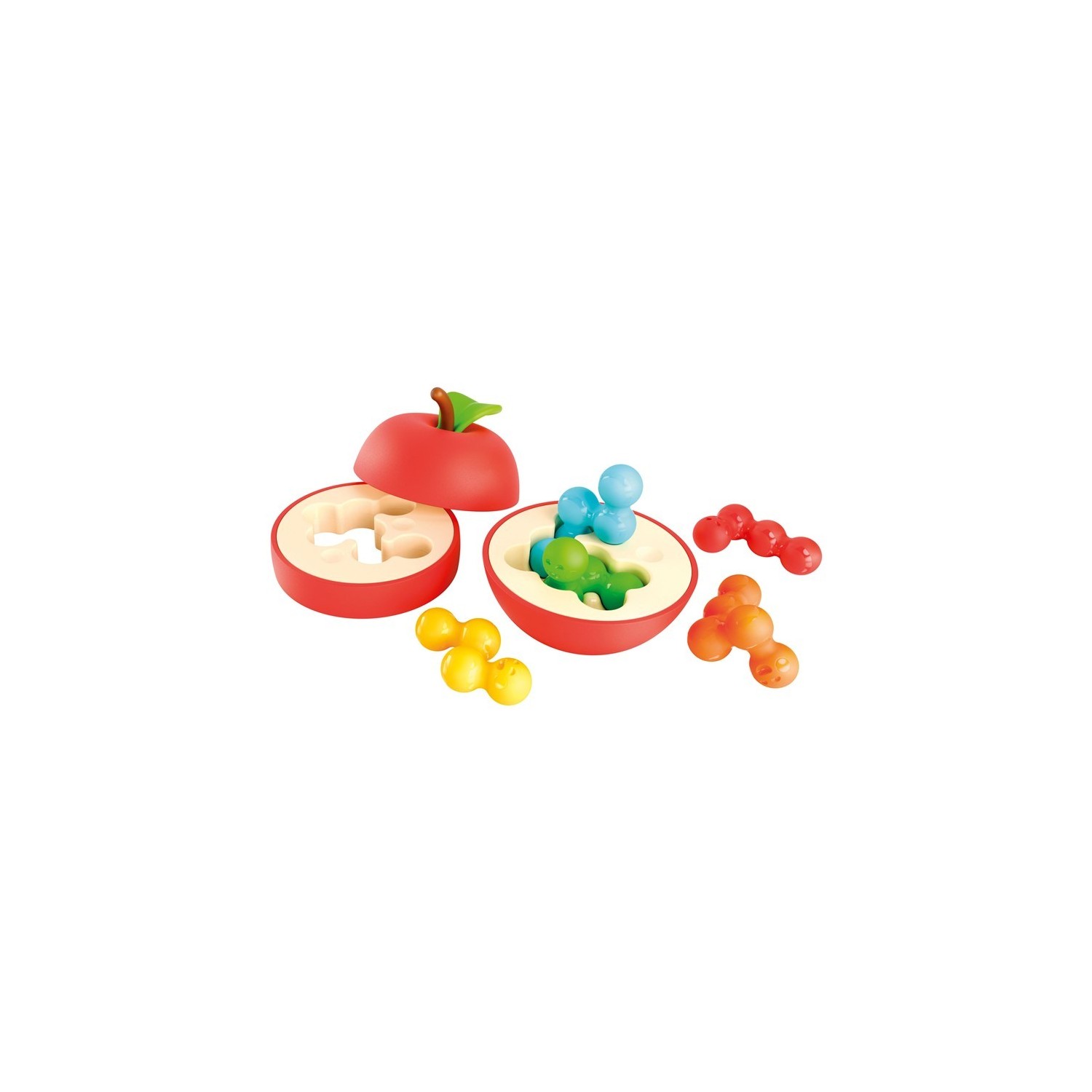 ¡En esta manzana viven 5 simpáticos gusanos! Encaja todos los gusanos dentro de la manzana apilando las capas una sobre otra. Encuentra la posición correcta de los gusanos y organiza las tres capas para cerrar la manzan Encaja todos los gusanos dentro de la manzana apilando las capas una sobre otra. Encuentra la posición correcta de los gusanos y organiza las tres capas para cerrar la manzana y completar cada uno de los 80 desafíos. ¡Diversión y retos garantizados! A partir de 5 años
