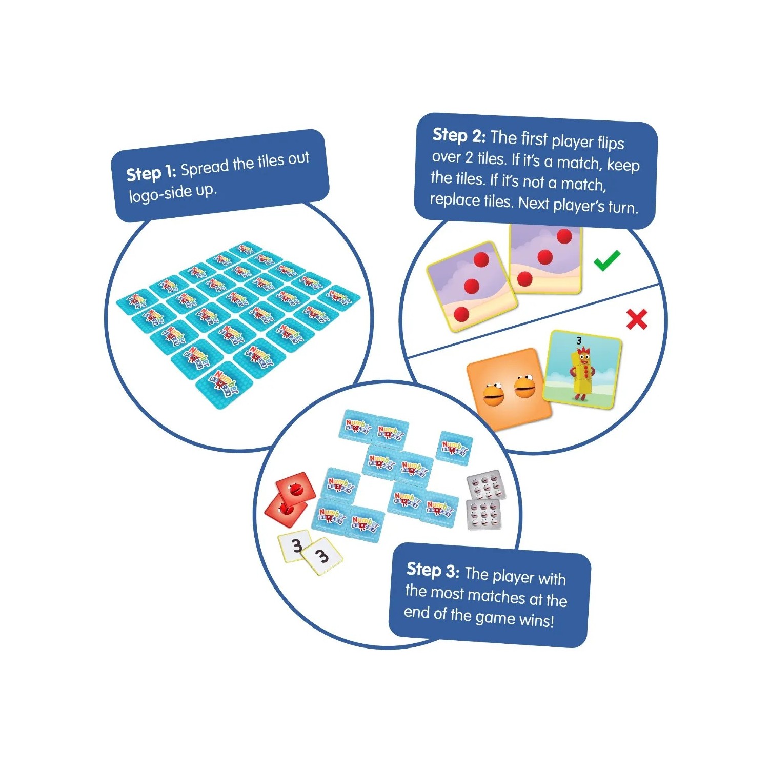 Los niños se divertirán mucho encontrando y emparejando con este divertido juego de Numberblocks® inspirado en la exitosa serie de televisión de CBeebies. Hay cuatro formas de emparejar: por Numberblocks del Uno al Diez, Numberblobs, Diversión con Números y Numberlings. Las resistentes cartas a todo color están diseñadas para manos pequeñas y tienen bordes codificados por colores para facilitar la preparación del juego. Incluye 80 cartas. Adecuado para uno o más jugadores.