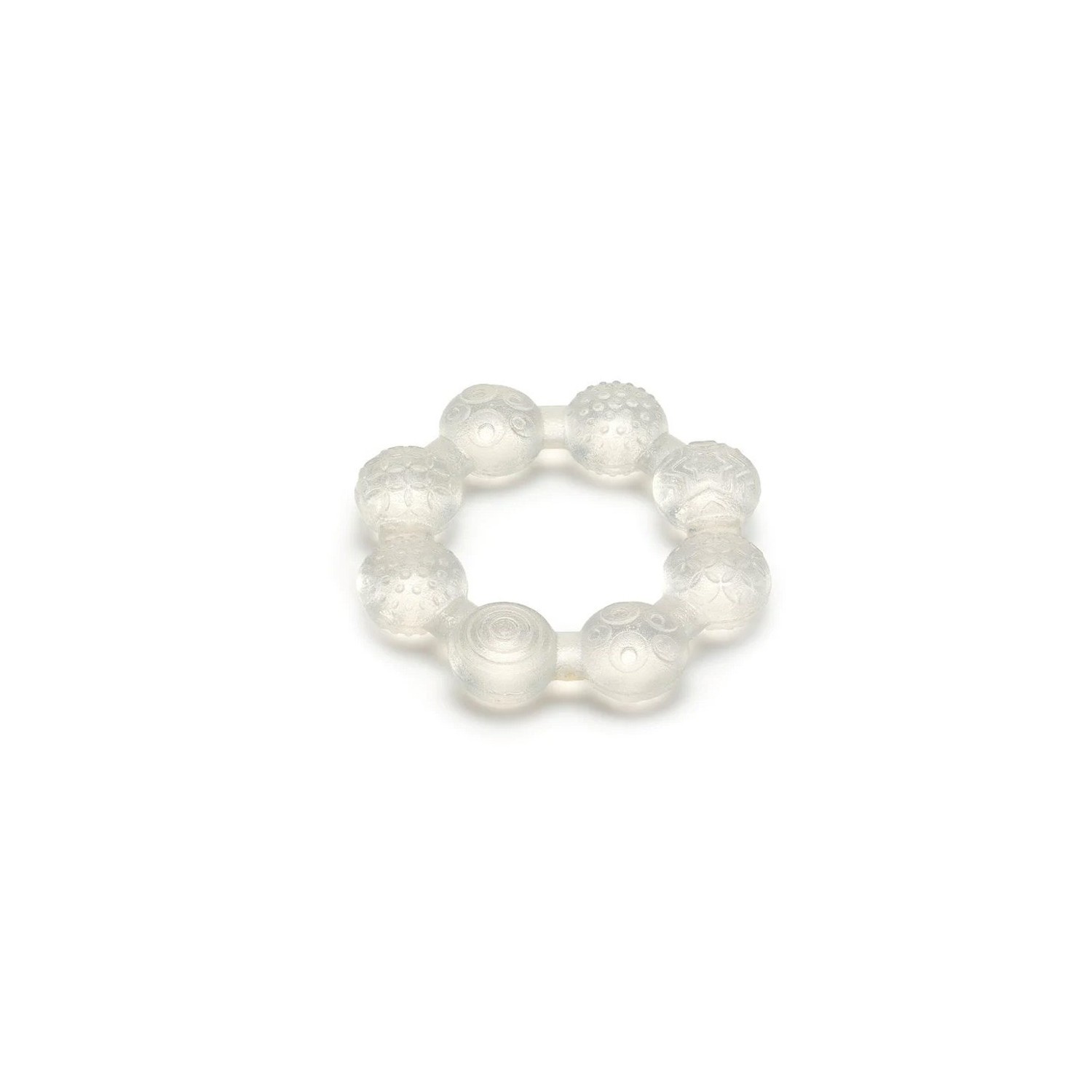 Su diseño en forma de anilla facilita el agarre por manos pequeñas, mientras que sus superficies texturizadas por ambos lados ayudan a masajear las encías y a estimular los dientes emergentes.