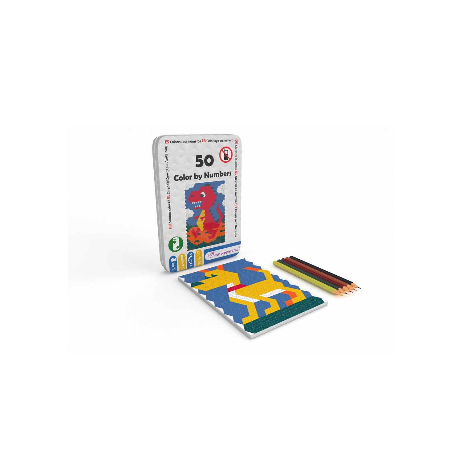 Set de 50 dibujos para colorear a partir de números. En cada hoja se incluye un motivo oculto que se revela pintando correctamente los espacios con el color correcto, atendiendo a los números. Cada color tiene un número asignado. ¿Serás capaz de encontrar las figuras ocultas¡? Además, el juego viene en caja de lata para poderlo llevar a cualquier parte y que los más peques trabajen su capacidad de observación, la motricidad fina y la creatividad en cualquier parte