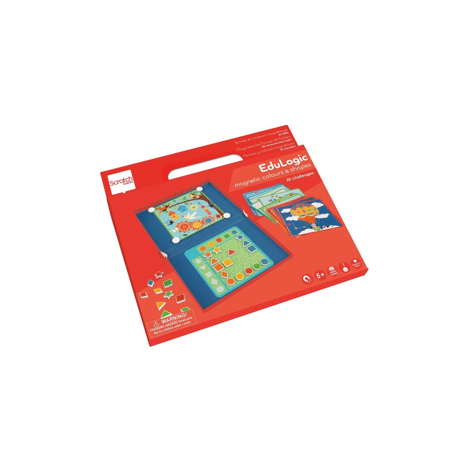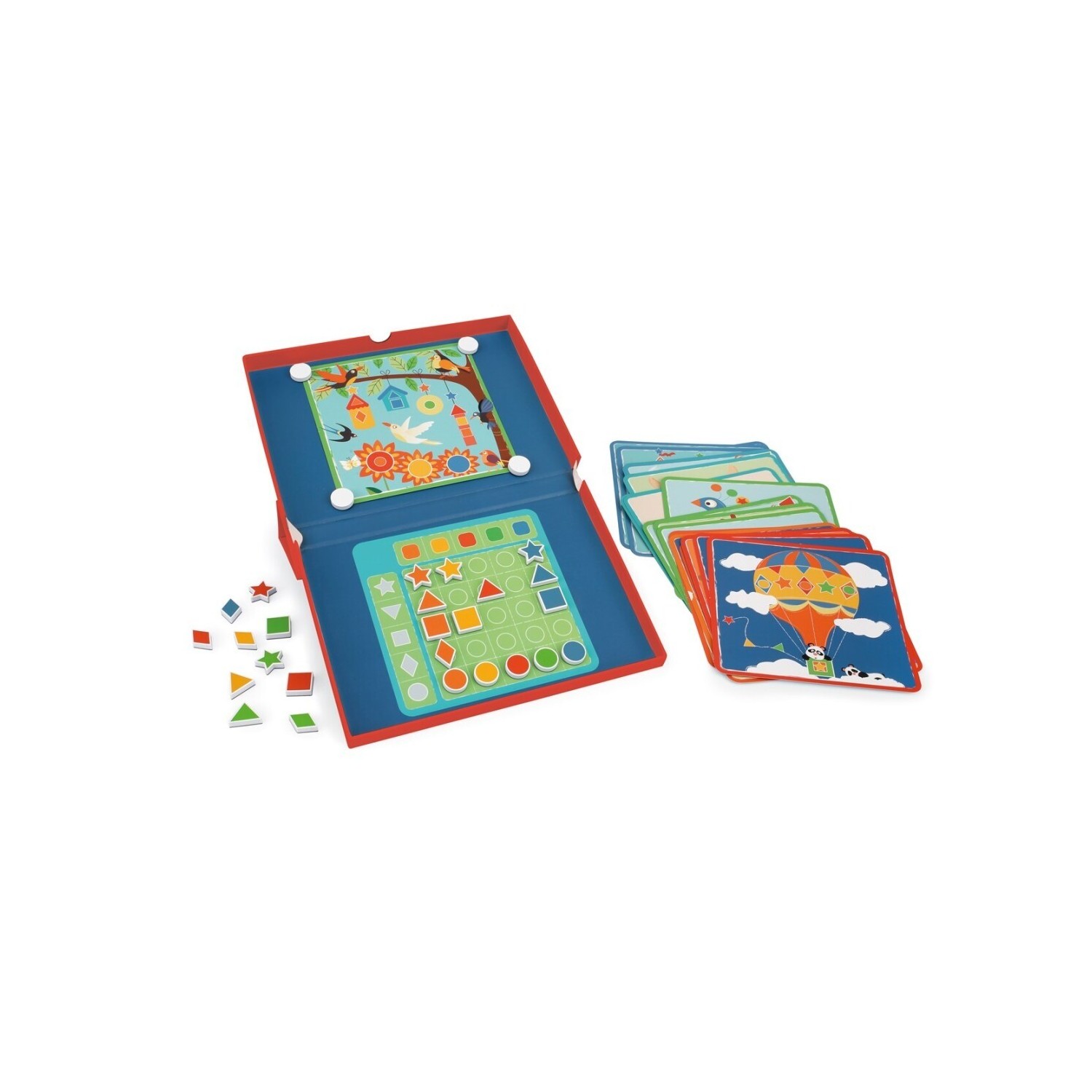 Colores y formas. Juego magnético con 20 desafíos. Elije una tarjeta y busque las diferentes formas y colores en ella. Pega los imanes en el lugar correcto. Juegos educativos que tu hijo puede jugar solo. Las soluciones a las tareas se pueden encontrar en una tarjeta de soluciones, para que los niños también puedan comprobarlas ellos mismos.