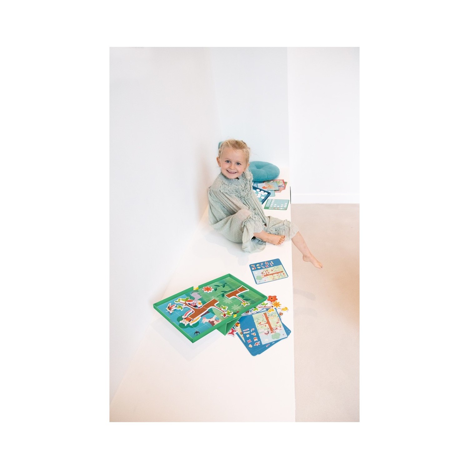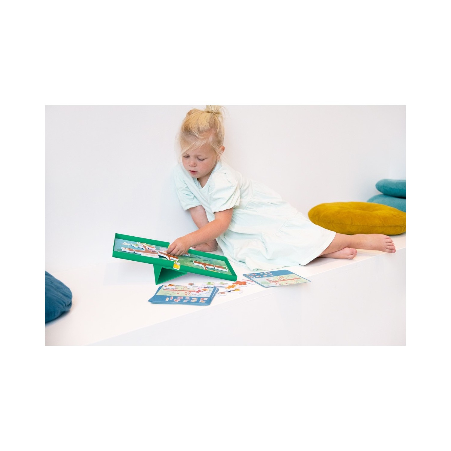 ¡Diversión en la granja! Juego magnético con 20 desafíos y 2 niveles. Toma una tarjeta de tareas y recrea la escena con los animales, flores y árboles magnéticos. Deja volar tu imaginación y crea tu propia historia.