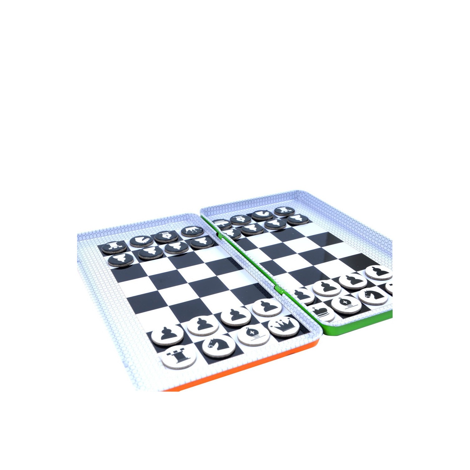 El juego de estrategia para dos jugadores por excelencia que enamor a jugadores de todas las edades en todo el mundo. Con él se trabaja la atención, observación, el razonamiento lógico y el cálculo, al tiempo que permite divertirse en los trayectos por carretera. La caja sirve de tablero de juego y las instrucciones están impresas en la misma.