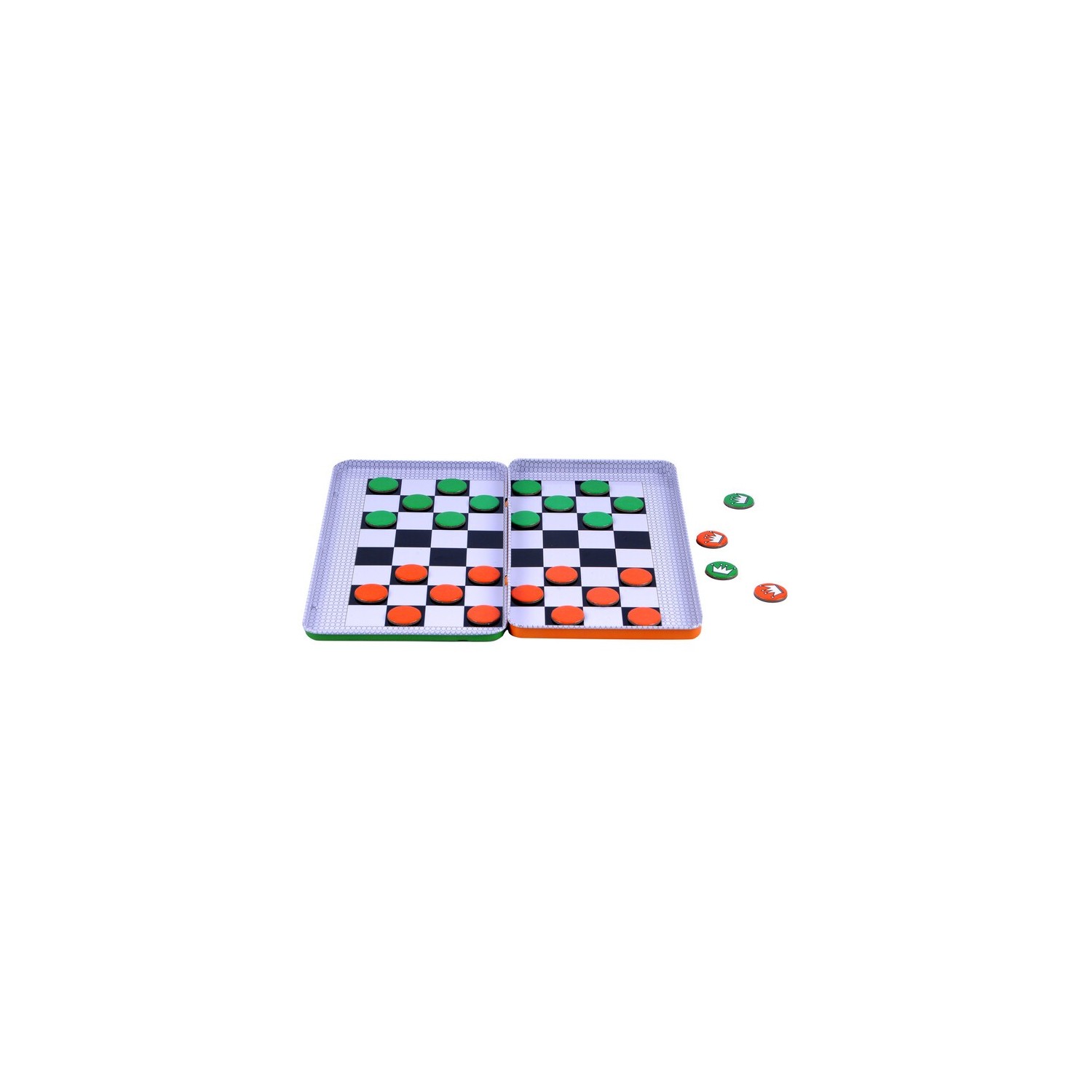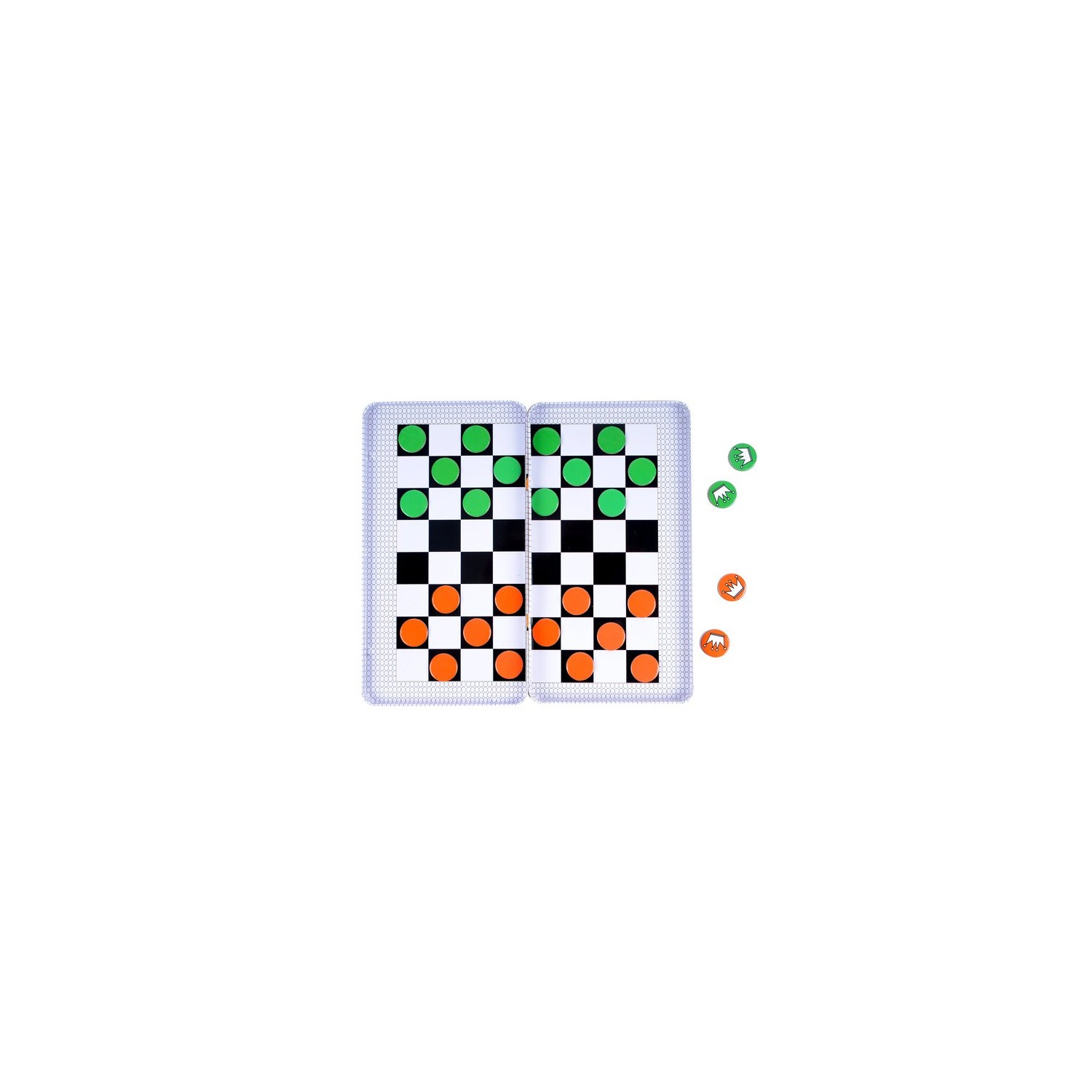 Clásico juego de las damas, ahora en un formato especial en caja de lata, ideal para llevar a cualquier parte y jugar mientras estamos de viaje en el coche. El objetivo de este juego es lograr ser el jugador con fichas activas en el tablero al final de la partida. Cada jugador dispone de 12 fichas que dispone de forma alterna en las casillas de extremos opuestos del tablero. Por turnos se hace avanzar fichas hacia delante y en diagonal, intentando comer fichas del contrincante o llegar al otro extremo del tablero. Un divertido juego para dos jugadores con el que trabajar la observación, la atención y el razonamiento lógico, al tiempo que permite divertirse en los trayectos por carretera. La caja sirve de tablero de juego y las instrucciones están impresas en la misma.