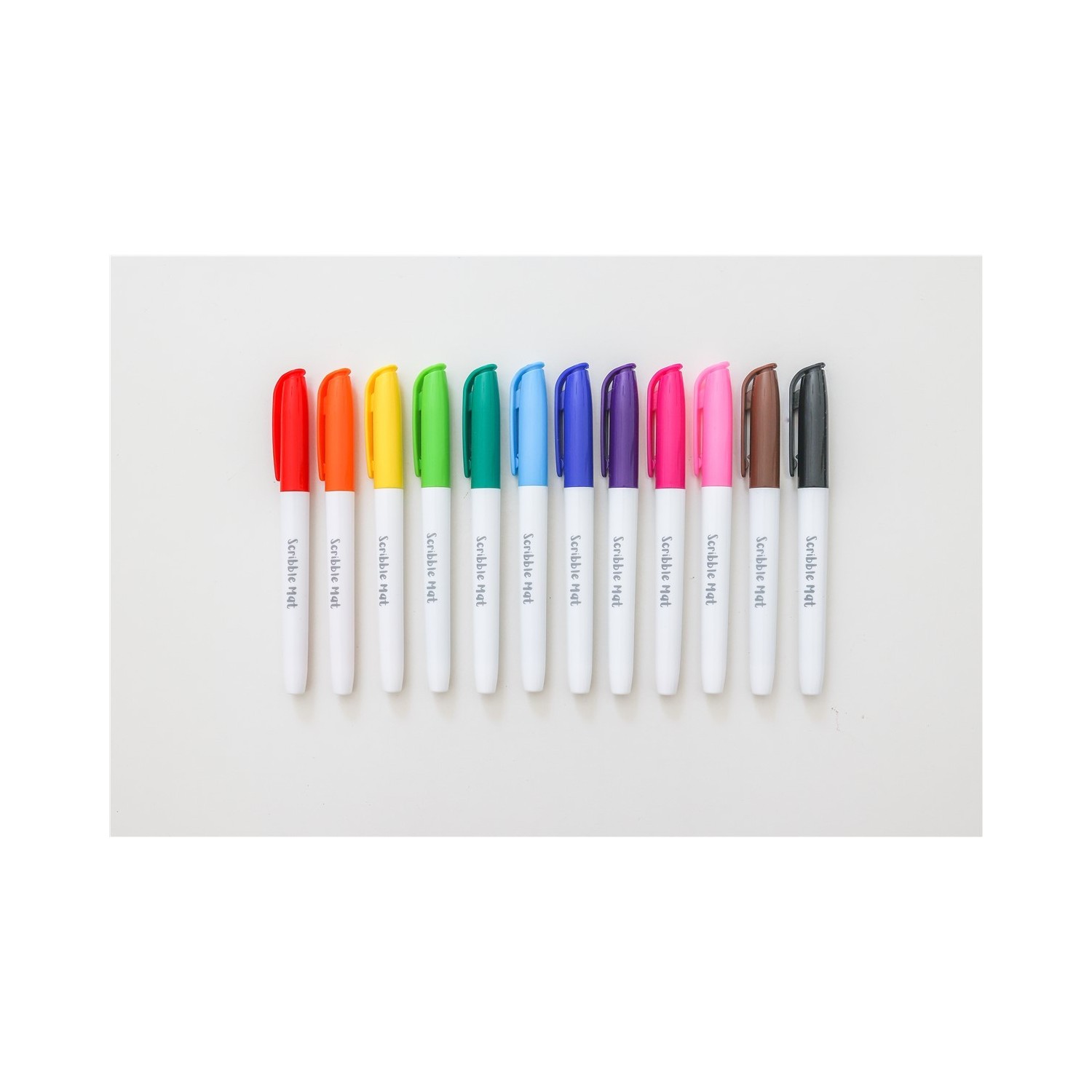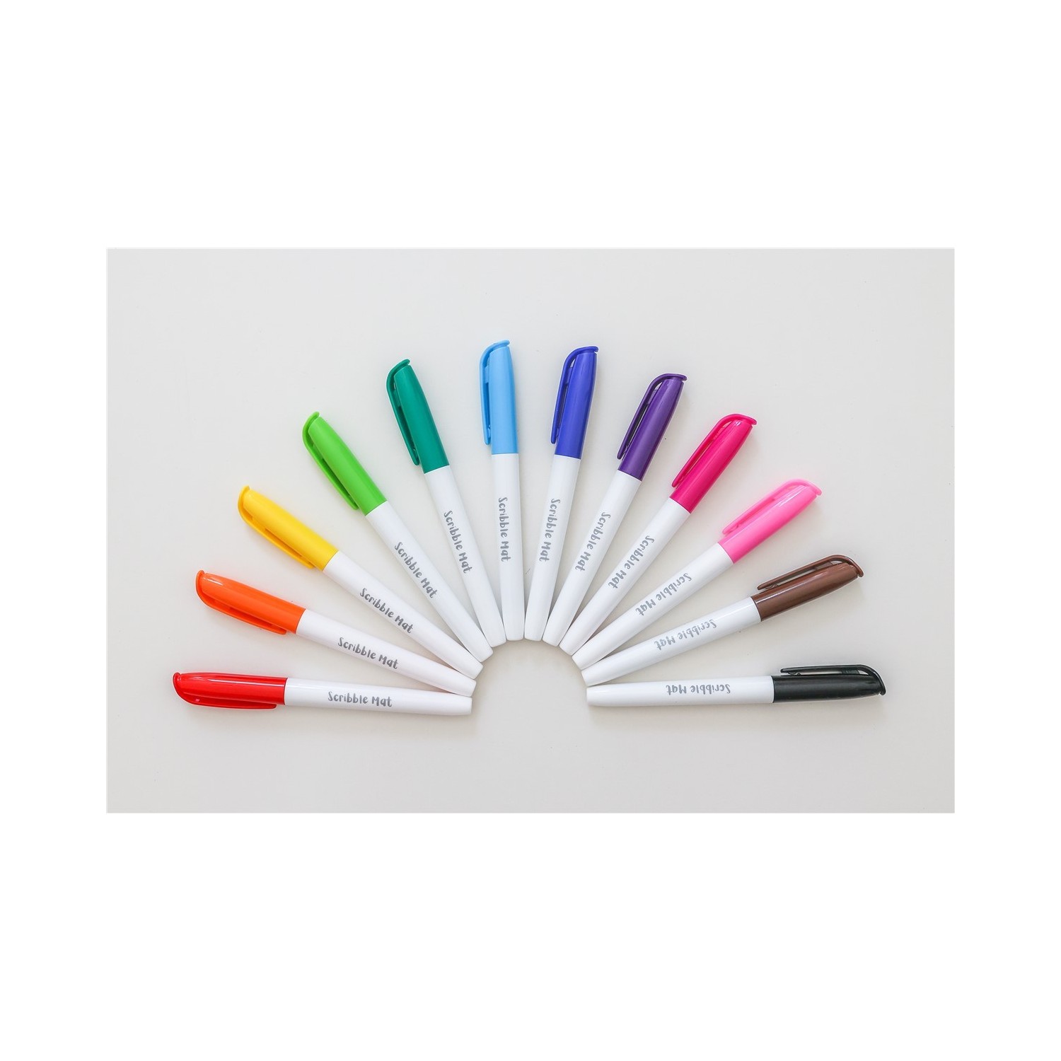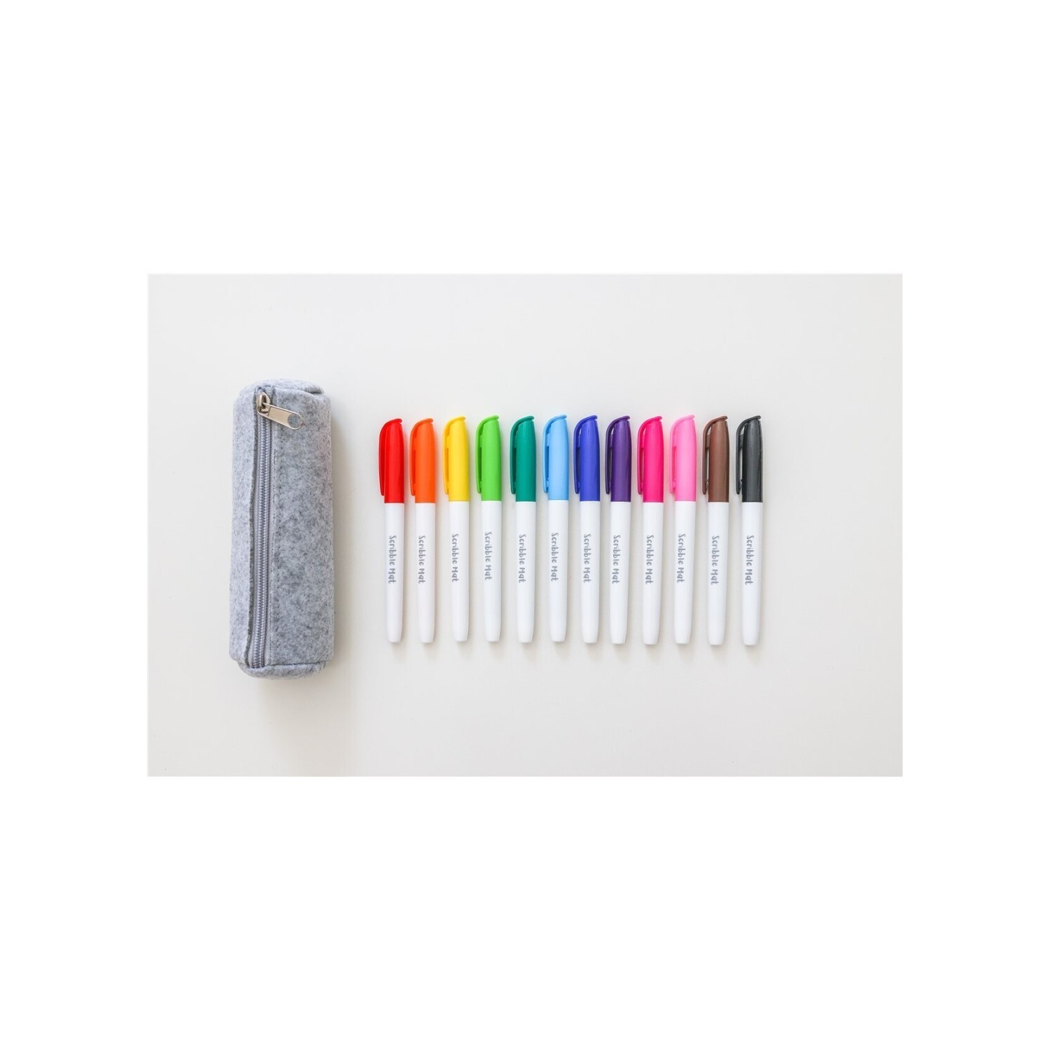 - 12 Rotuladores tiza líquida (rojo, naranja, amarillo, verde claro, verde oscuro, azul claro, azul oscuro, lila, rosa rojo, rosa, marrón y negro )