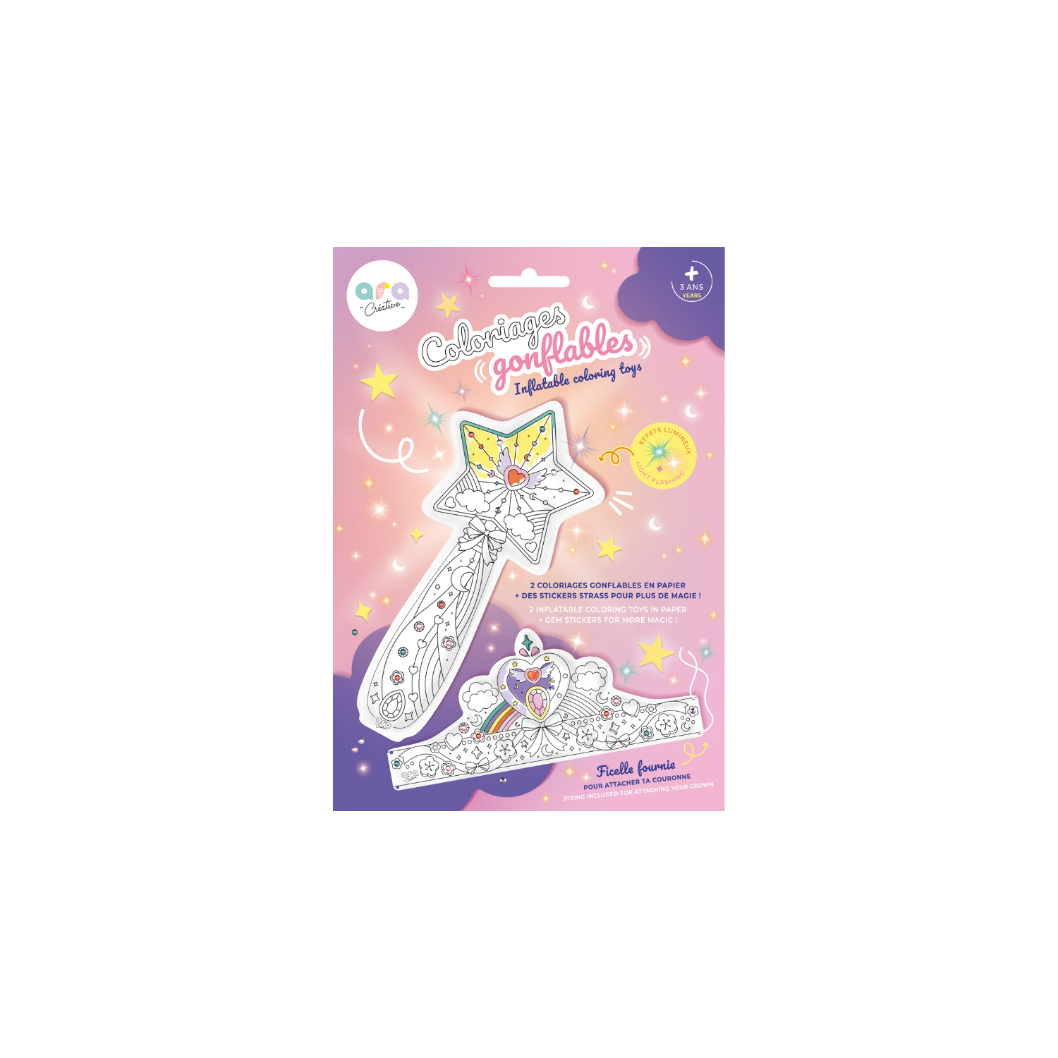 Un dúo mágico: colorea, infla y haz que tu varita mágica y tu corona brillen con pedrerías.