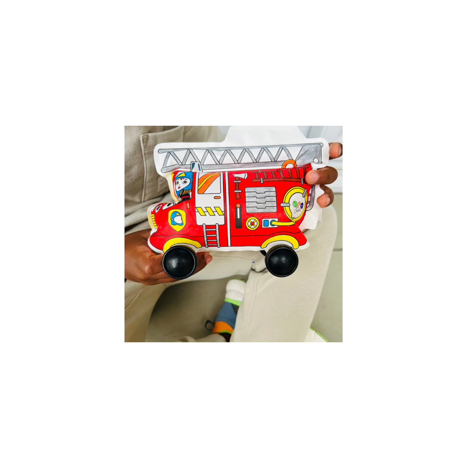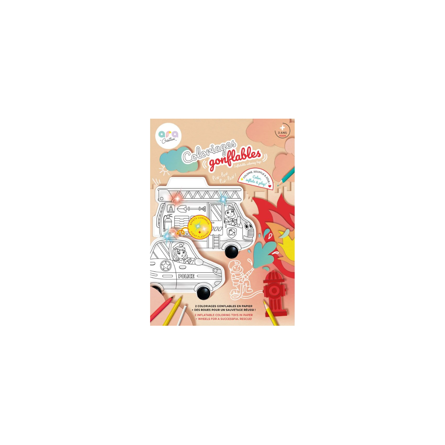 Contiene 2 inflables de rescate (policía y bombero). Monta las ruedas para que circulen y si los mueves, se enciende una luz azul y roja.