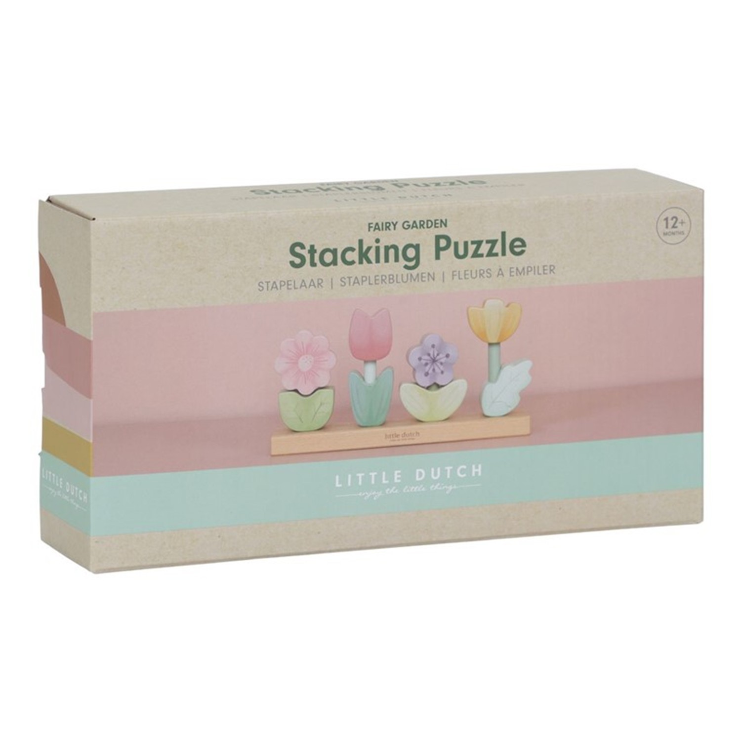 ¡Construyamos juntos un jardín de flores! Mezcla y combina los bloques y crea una fila de cuatro flores mágicas de la colección Fairy Garden. Coloca los bloques en el soporte uno por uno y practica tu coordinación mano-ojo. Un divertido rompecabezas de apilamiento para jugar y aprender que también es un hermoso adorno decorativo en tu habitación infantil.