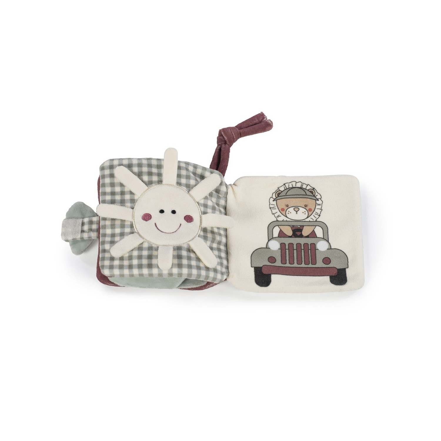 Este adorable libro está diseñado para estimular los sentidos y el desarrollo temprano de tu bebé. Cada página ofrece sorpresas como un león asomándose, una luna arrugada con estrellas, un sol sonriente y un león aventurero en un jeep, que fomentan la curiosidad y las habilidades motoras finas.