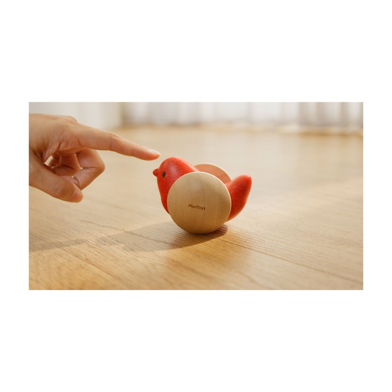 Cuando el pájaro rueda hacia adelante, su cabeza se mueve hacia arriba y hacia abajo rítmicamente, captando la atención de los niños. El movimiento giratorio, impulsado por una base redondeada, presenta un mecanismo simple que es fácil de entender para los niños. Tiene un tamaño que se adapta a las manos pequeñas, por lo que es fácil de agarrar y controlar.