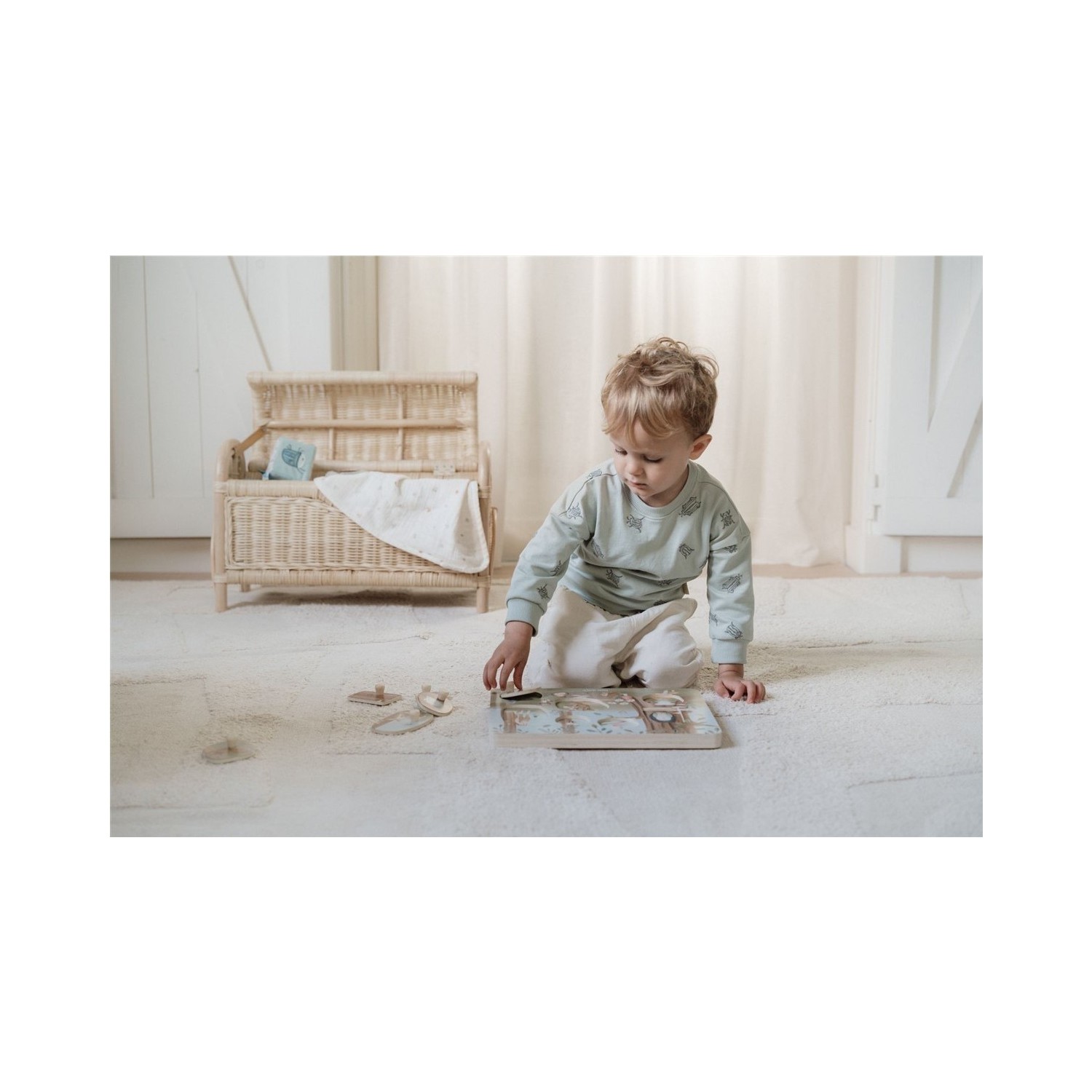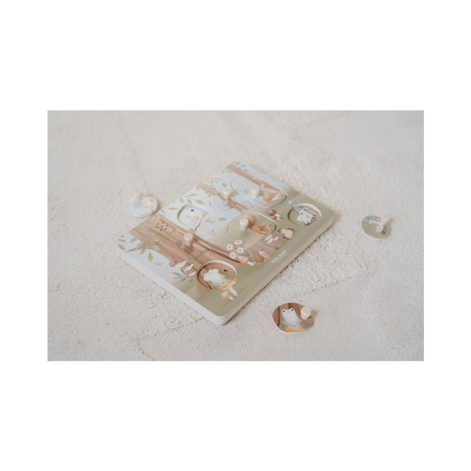 Conoce a todas las criaturas que viven en el bosque y reconoce sus formas y sonidos únicos con este divertido puzle. Cuando levantes una pieza, escucharás un sonido correspondiente. Este puzle con 7 piezas de animales, hojas y hongos promueve la coordinación mano-ojo y estimula el vocabulario de tu hijo. El puzle contiene sensores que se activan con luz: utilízalo con luz brillante para obtener los mejores resultados. Asegúrate de que el interruptor esté encendido para activar la función de sonido. Los sensores pueden activarse accidentalmente con la luz solar directa, así que siempre apaga el rompecabezas cuando no lo uses. (Pilas (2 x AAA) no incluidas).