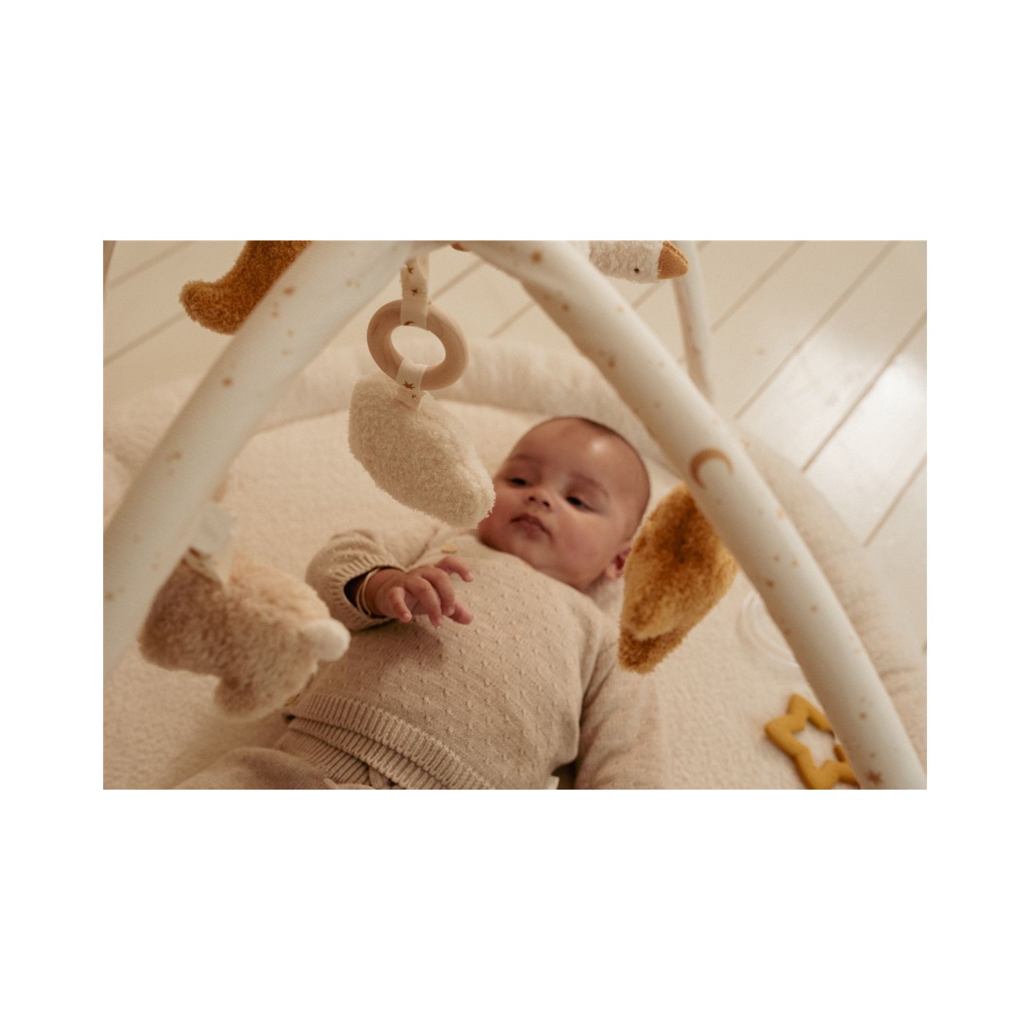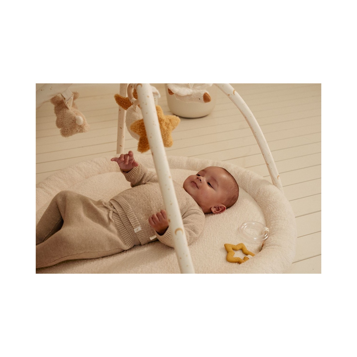 Deja que tu pequeño explore la Alfombra de Juego de Actividades Newborn Naturals. Esta suave y cómoda alfombra crea un espacio de juego seguro con diferentes texturas, sonidos crujientes y detalles divertidos que estimulan los sentidos. ¡Perfecta para jugar boca abajo y para sus primeros descubrimientos! Los tonos naturales neutros se integran a la perfección en cualquier habitación infantil, mientras que la variedad de texturas y sonidos realza la diversión. Un lugar acogedor para jugar, sentir y crecer. ¡Para pequeños exploradores con grandes sueños!