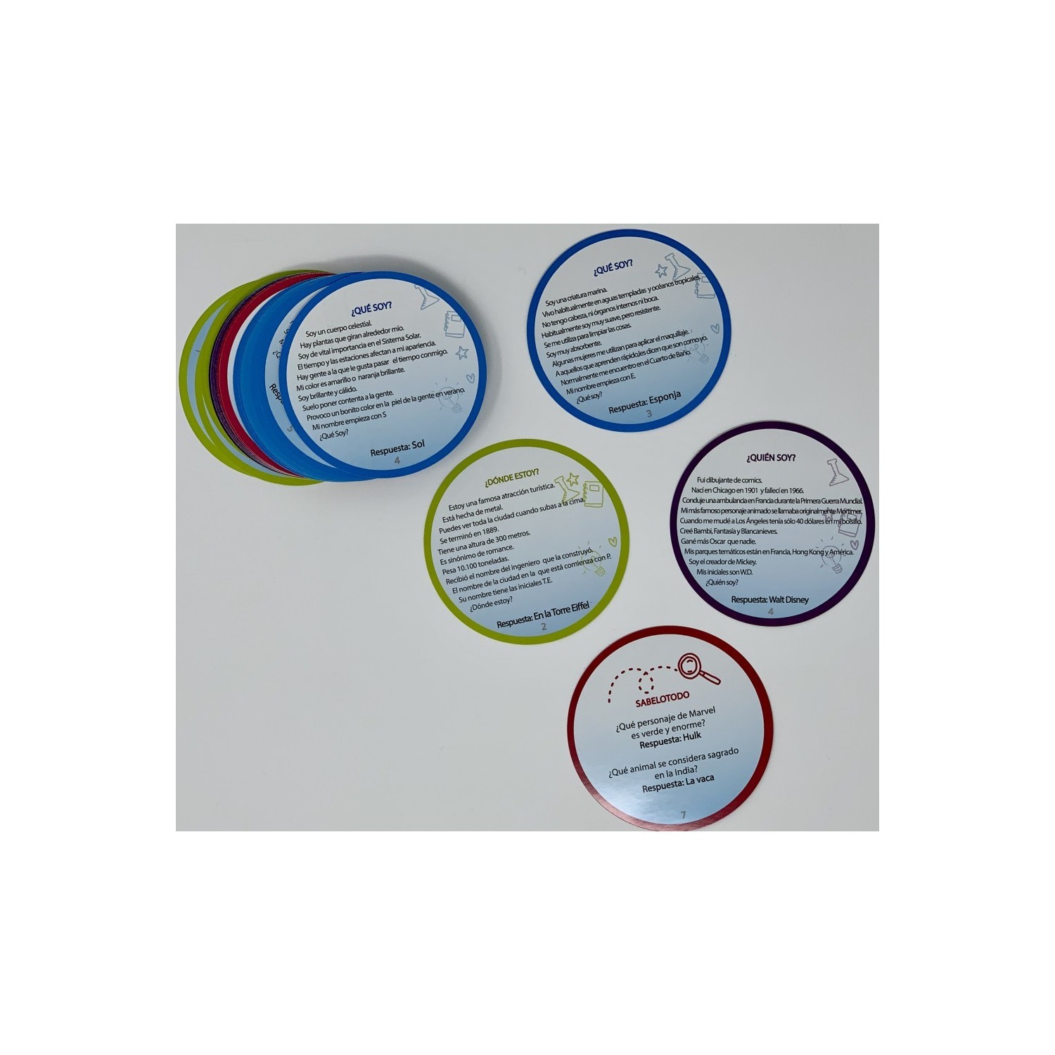Consigue ser el primer jugador en responder correctamente a un total de 4 tarjetas de cualquiera de las categorías.