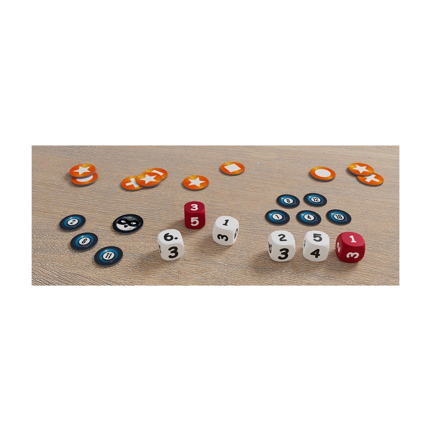 Los ladrones mapaches se han propuesto robar el contenido de la caja fuerte (cubilete) y para ello deben formar la combinación correcta de la caja fuerte. Para lograrlo se han de combinar los números de los dados y los símbolos de las fichas propias. Quien se deshaga de todas sus fichas abre la caja fuerte y gana partida.