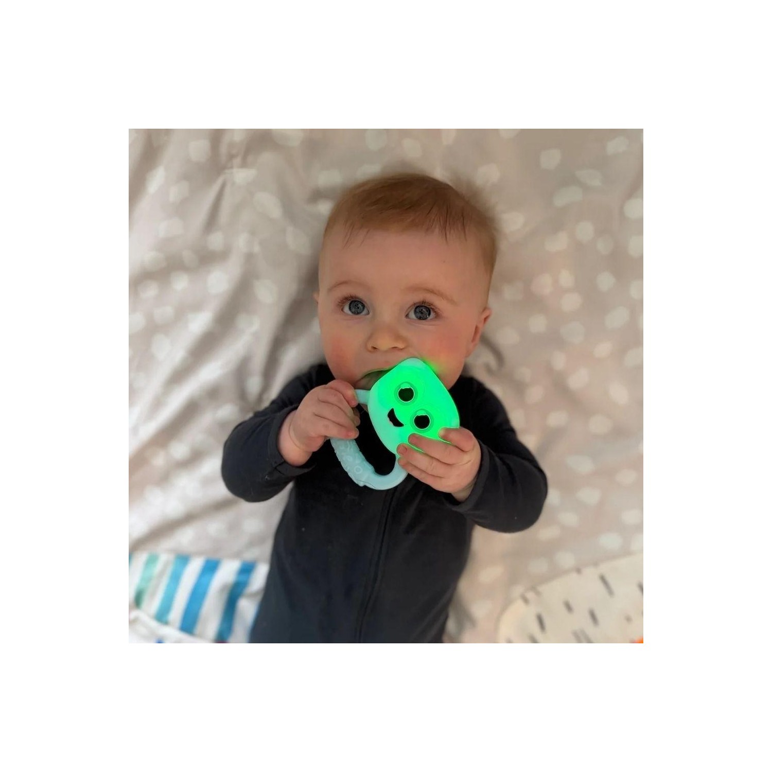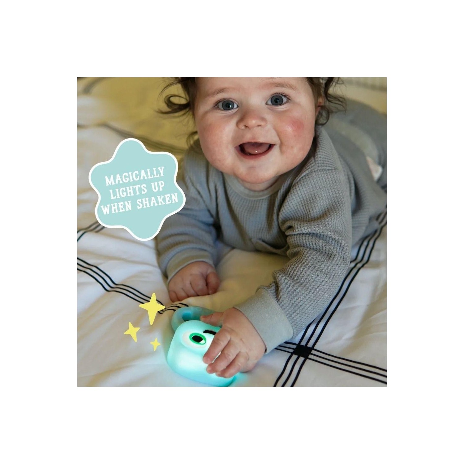 Desde el primer instante, el Sonajero Luminoso Glo Pals invita al bebé a descubrir el mundo a través de la luz, el sonido y el movimiento. Al agitarlo, se enciende como por arte de magia, iluminando el entorno con suaves destellos de colores que despiertan la curiosidad y provocan sonrisas.
